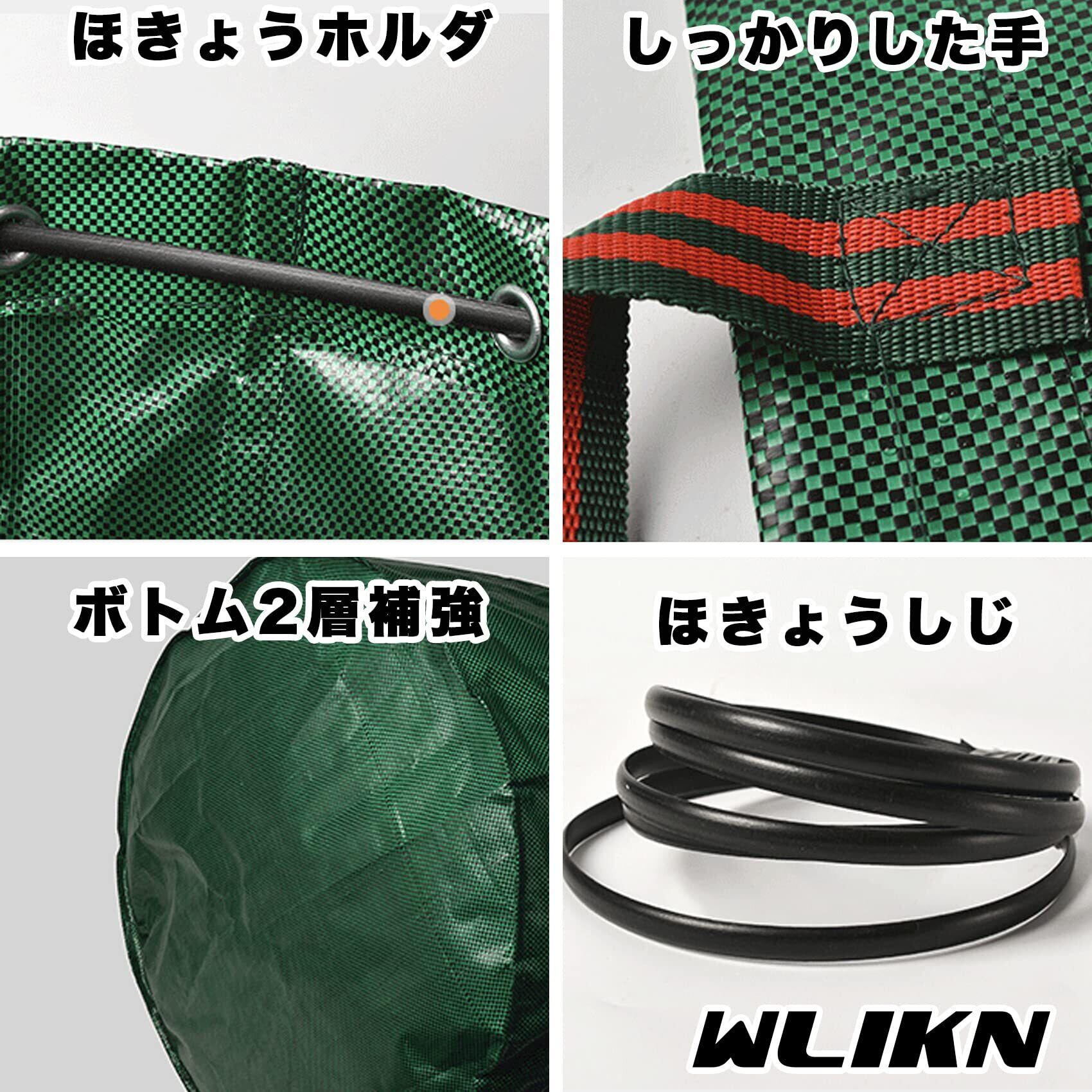 Wlikn ガーデンバッグ 400L 2パック 再利用可能 麻袋 自立式 折りたたみ式 大型 庭用袋 ハンドル付き たい肥 落ち葉 集草 収穫用 園芸用 ゴミ袋 コンポストバッグ