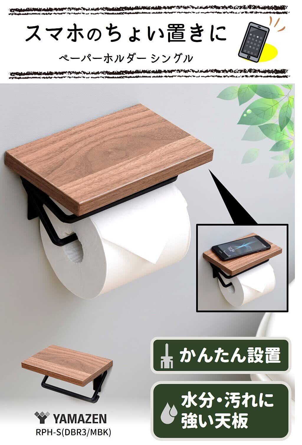 山善(YAMAZEN) トイレットペーパーホルダー 棚付き (スマホ置き/インテリア) シングル 汚れに強い天板 かんたん設置 幅17.5×奥行11×高さ9cm ダークブラウン/マットブラック RPH-S(DBR3/MBK)