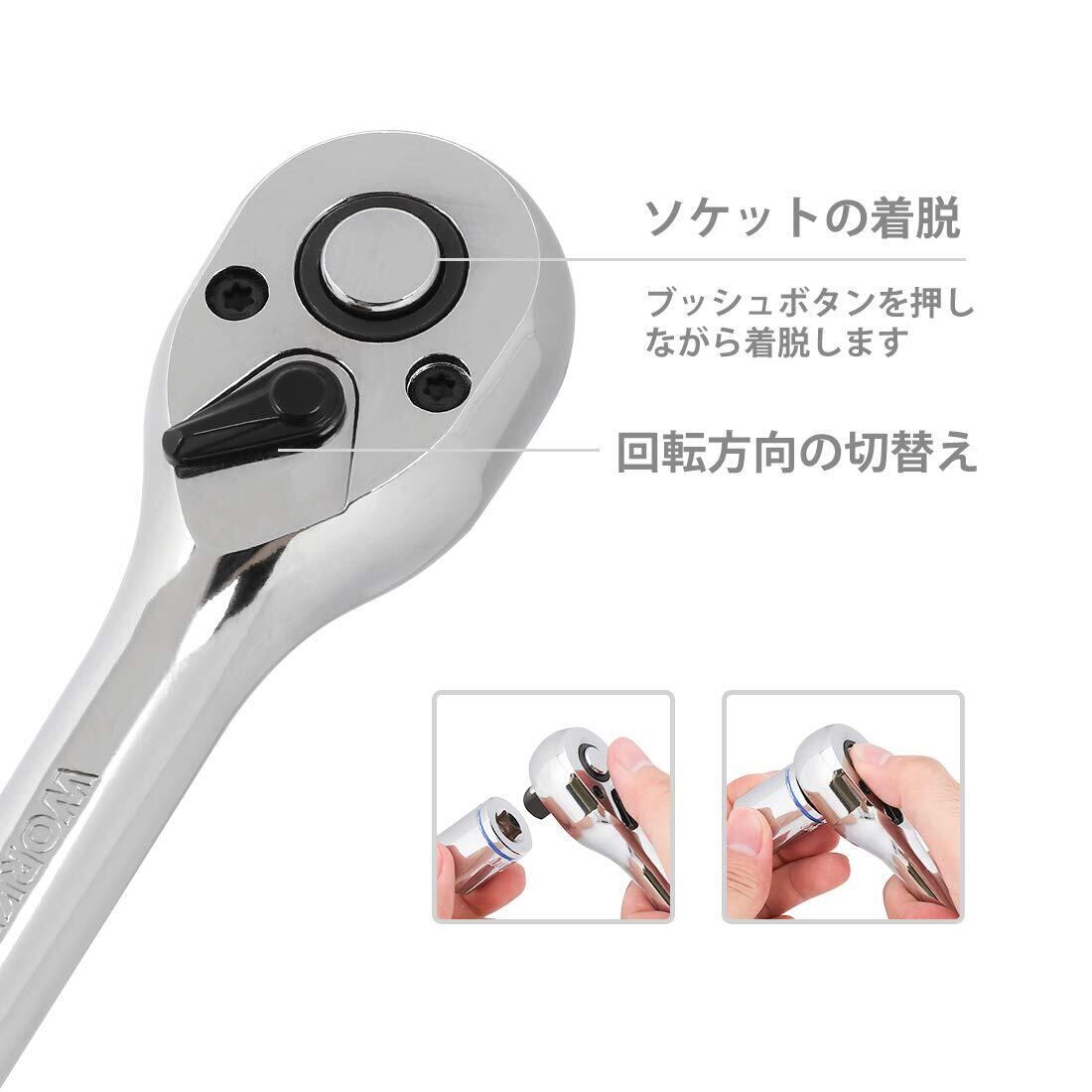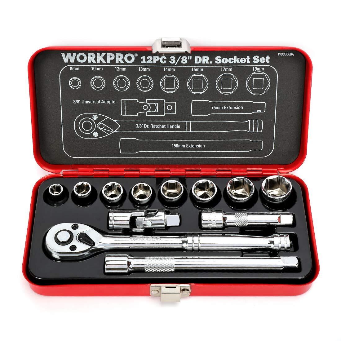 WORKPRO ソケットレンチセット ガレージツールセット ラチェットレンチ 差込角9.5mm(3/8インチ) クイックリリースラチェットハンドル 工具 道具 セット 12点組【鉄製ケース付属】