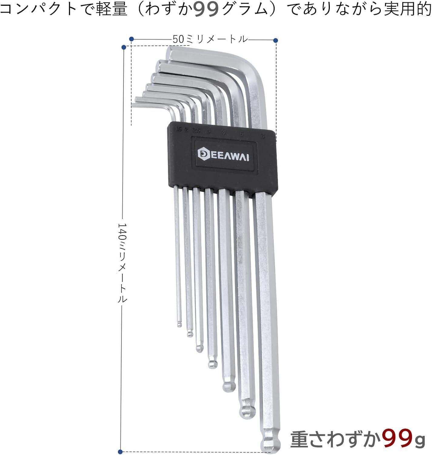 【人気商品】DeeAWai 六角レンチセット 7本組 初心者向け ボールヘッドロングアーム六角棒レンチセット 1.5mm-6mm 軽量 ポータブル アレンキーセット Cr-V 六角レンチ Lレンチ DIY デジタル修理 自転車バイク修理に適用, 重さわずか99g