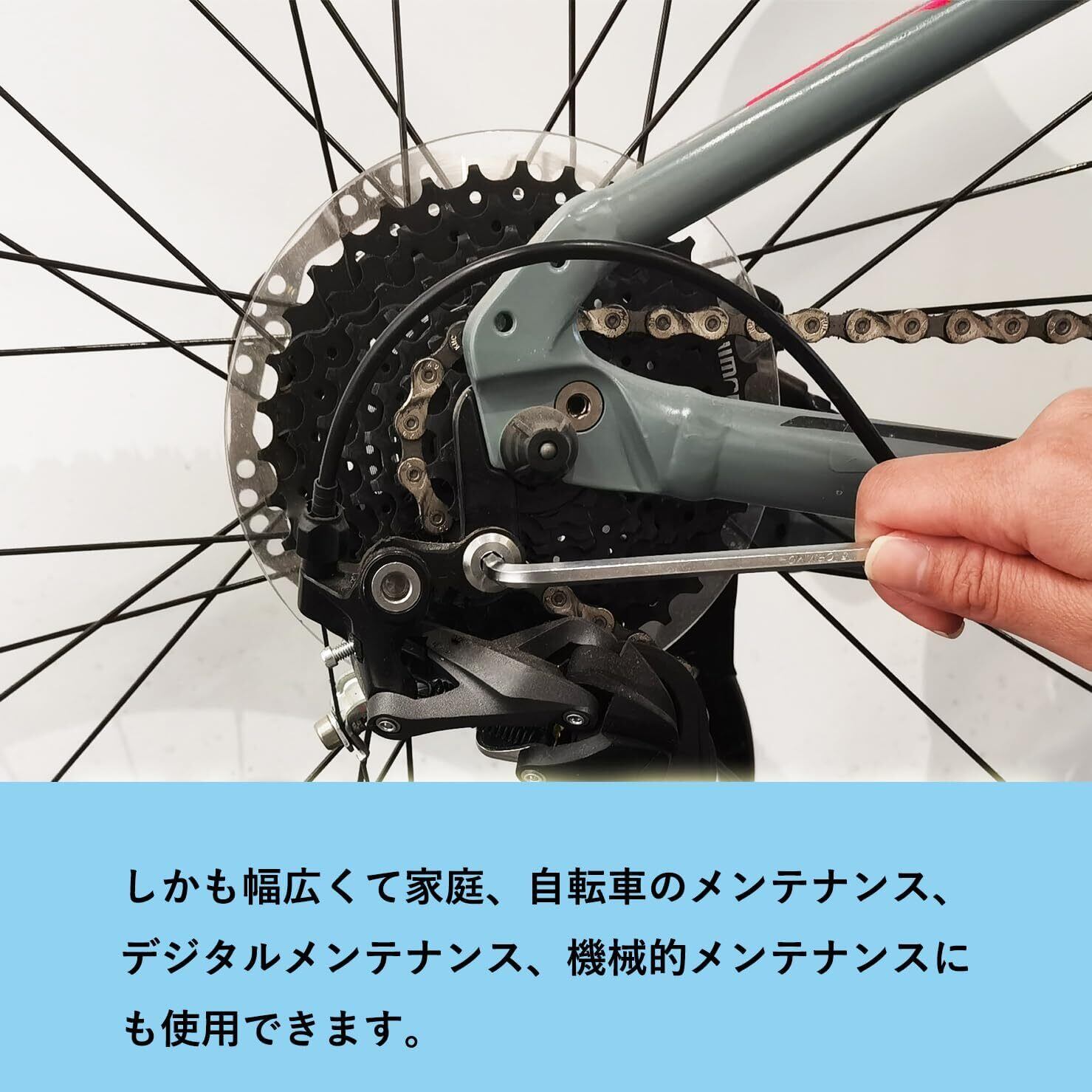 「よく使われる7つのサイズ」 六角棒レンチセットはファスナーを緩めたり締めたりするために使用できます。しかも幅広くて家庭、自転車のメンテナンス、デジタルメンテナンス、機械的メンテナンスにも使用できます。7種の異なるサイズの六角レンチを備えており、基本的な日常のニーズを満たすことができます。私たちのツールは全能ですよ!