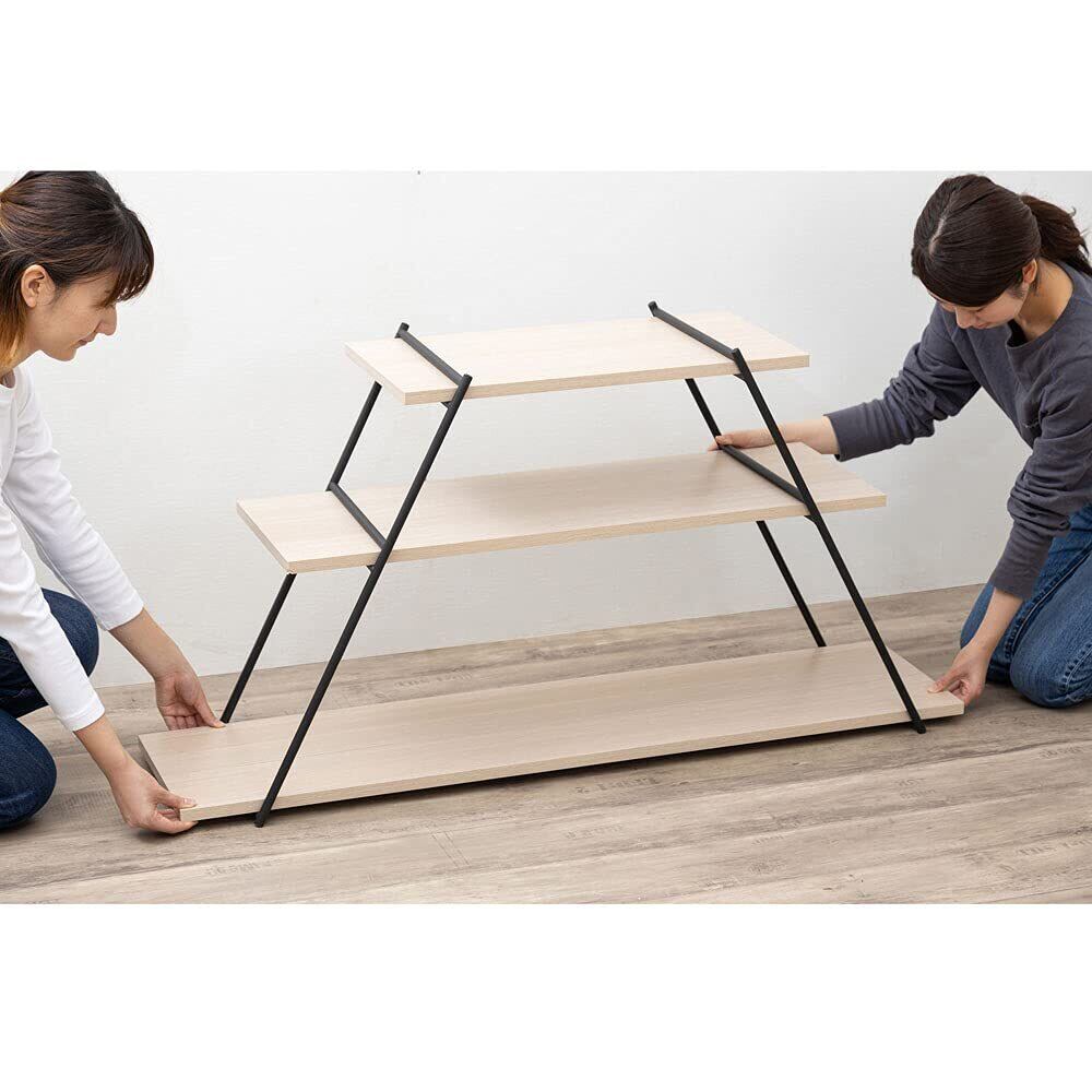 この棚は取り付け面の材質や金具、組み立て方によって耐荷重が変わります。過度な荷重をかけないでください。