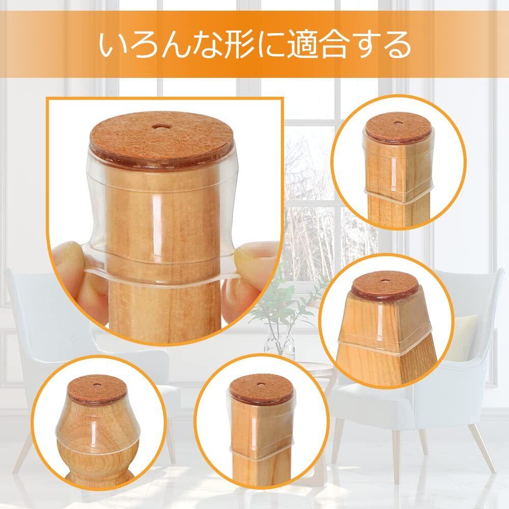 VIUME 椅子脚カバー 椅子あしキャップ シリコン クリアー 騒音 きず防止 滑り止め レフィル付きフェルトシート 丸脚 角脚兼用 16個セット 円形 (透明)