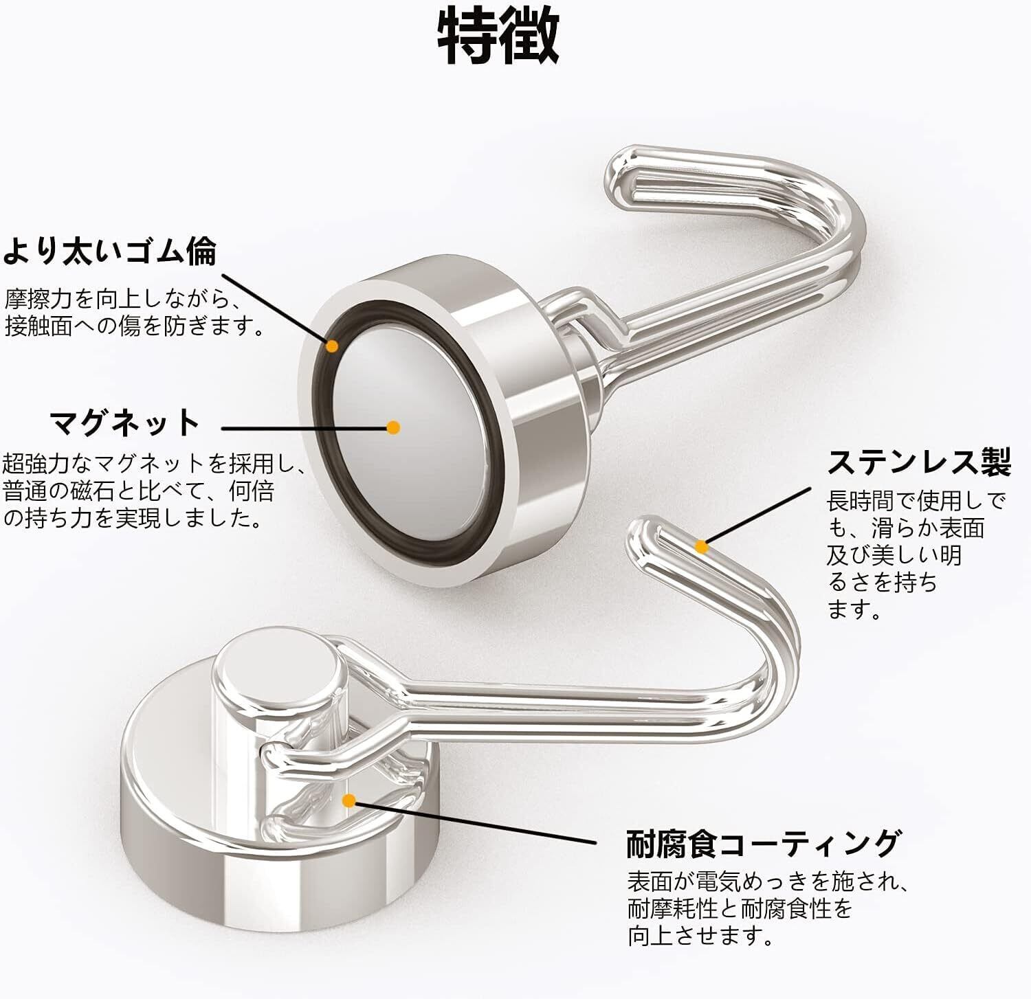 Homion【4個セット】マグネット フック 磁石付き 錆びない ステンレス製 垂直耐荷重10kg 水平耐荷重3kg 直径20MM 防腐食 冷蔵庫 玄関 キー ホルダー キッチン オフィス 浴室 お風呂 壁掛け用