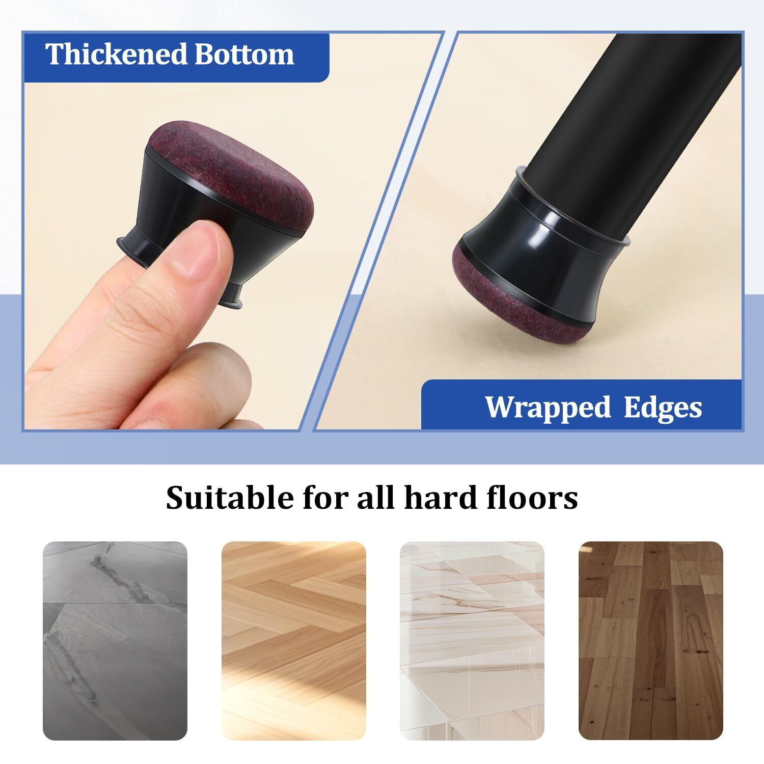 【360°包み込みフェルトパッド】 椅子の脚フロアプロテクターのフェルトパッドは、椅子のエッジをより良く包み込むため、はるかに厚くなっています。椅子の脚が床と直角でない場合でも、より耐久性があり、簡単に裂けることがありません。金属製と木製の椅子の脚に完璧にフィットします。