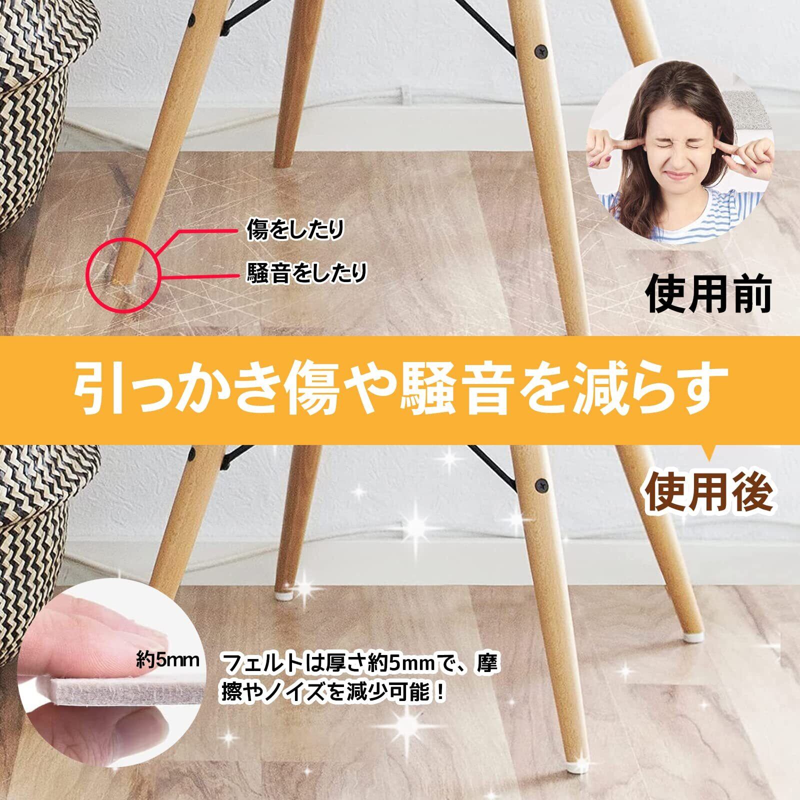 【引っかき傷や騒音を減らす&移動しやすい】 摩擦やノイズを減少可能!フェルトは厚さ約5mmで、このフェルトパッドを家具でつければ、床が傷つかずにキズ・ニック・へこみから保護できます。移動する際の騒音にも有効的に防ぎます。 &キズ防止パッドを使って摩擦や騒音を下げられるし、ベッドやソファなどの大型家具に貼れば、ベッド・ソファ・テーブルなどの重い家具が簡単に移動してなり、母親は掃除が楽になりますよ~