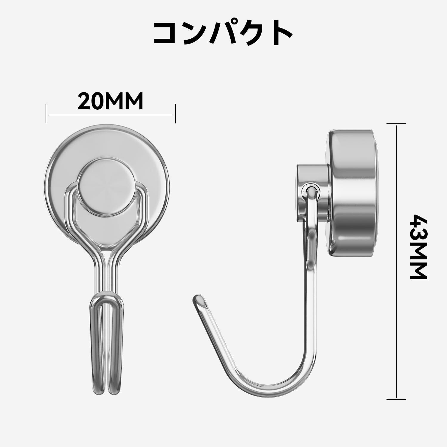 【コンパクトで目立たない】直径20mmのコンパクトな設計ながら、強力な磁力を備えています。小型で目立たず、デスク下や冷蔵庫横、スチール、浴室収納など、限られたスペースでも有効に活用できます。