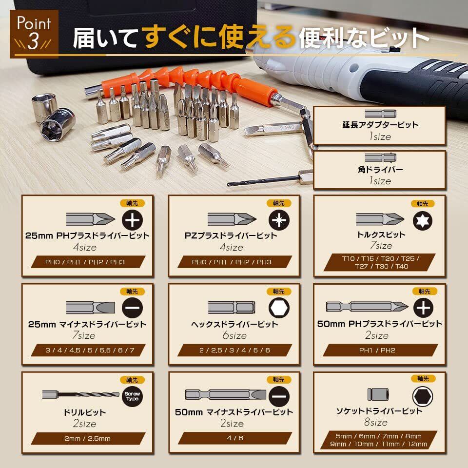 ◇DIYの強い味方! ビット45個+本体+USBケーブルの47点セット! DIYに必要なほとんどのビットがそろっています。