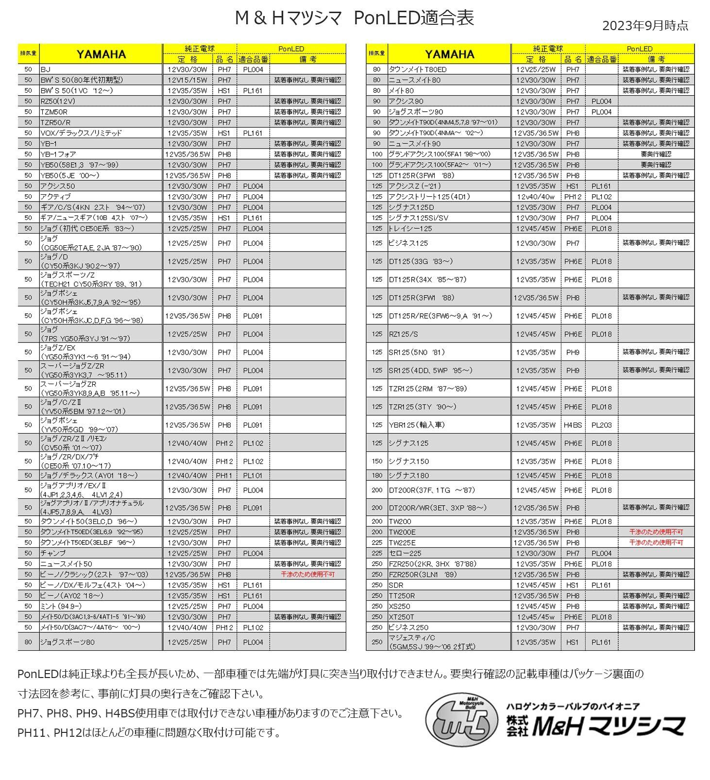 PonLEDは原付・小型バイク用です。