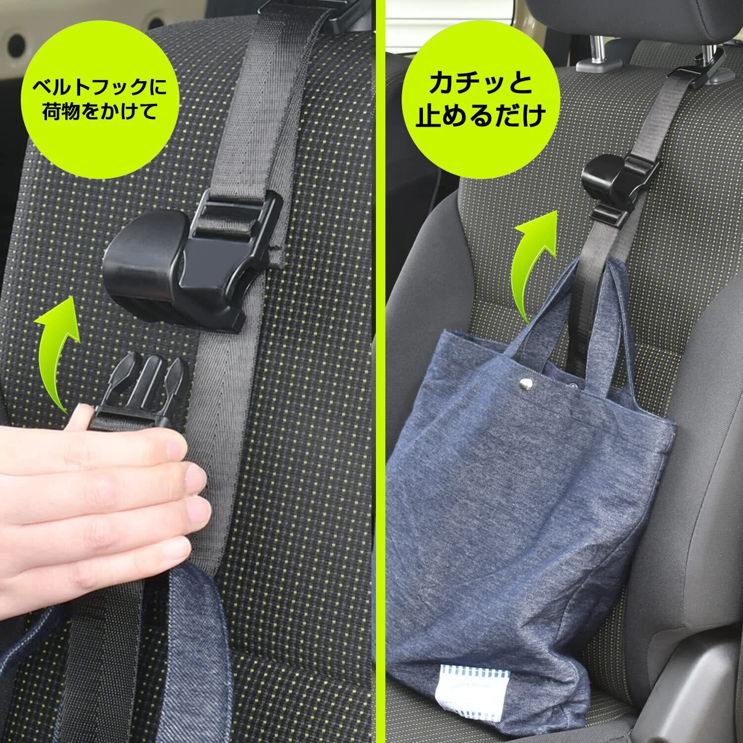 ヘッドレストに付けるだけ、荷物を固定し長さ調節ができるロングタイプのシートフックの2本セット。