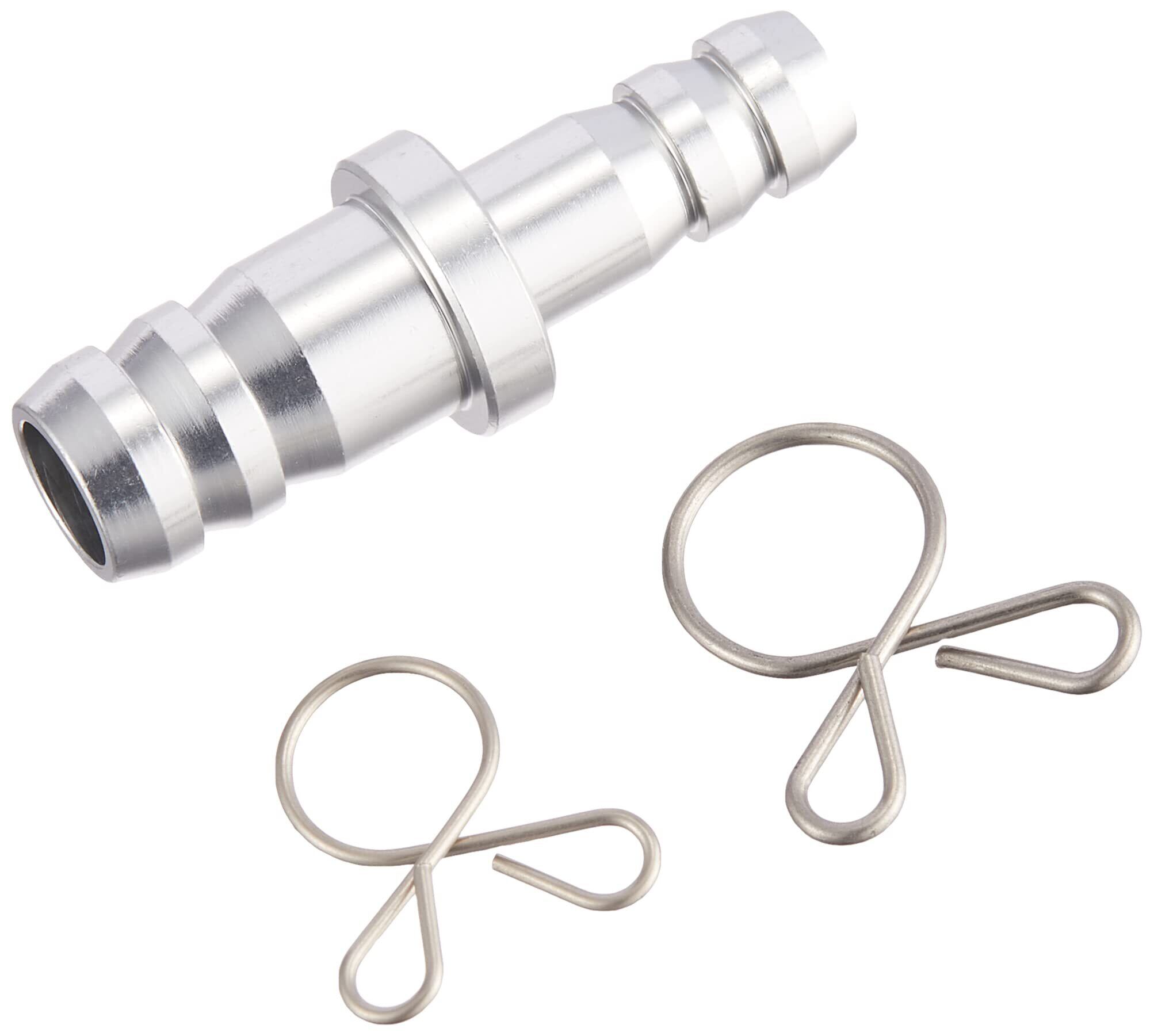 ガソリンタンクやキャブレターを交換した際に使用する変換ジョイントです。 径の異なるフューエルホースなどのジョイントに必要です。 【製品仕様】 ●ホースクリップ付属 ●アルミ製アルマイト仕上げ ●変換サイズ:6mm→8mm ●カラー:シルバー ●1個入り