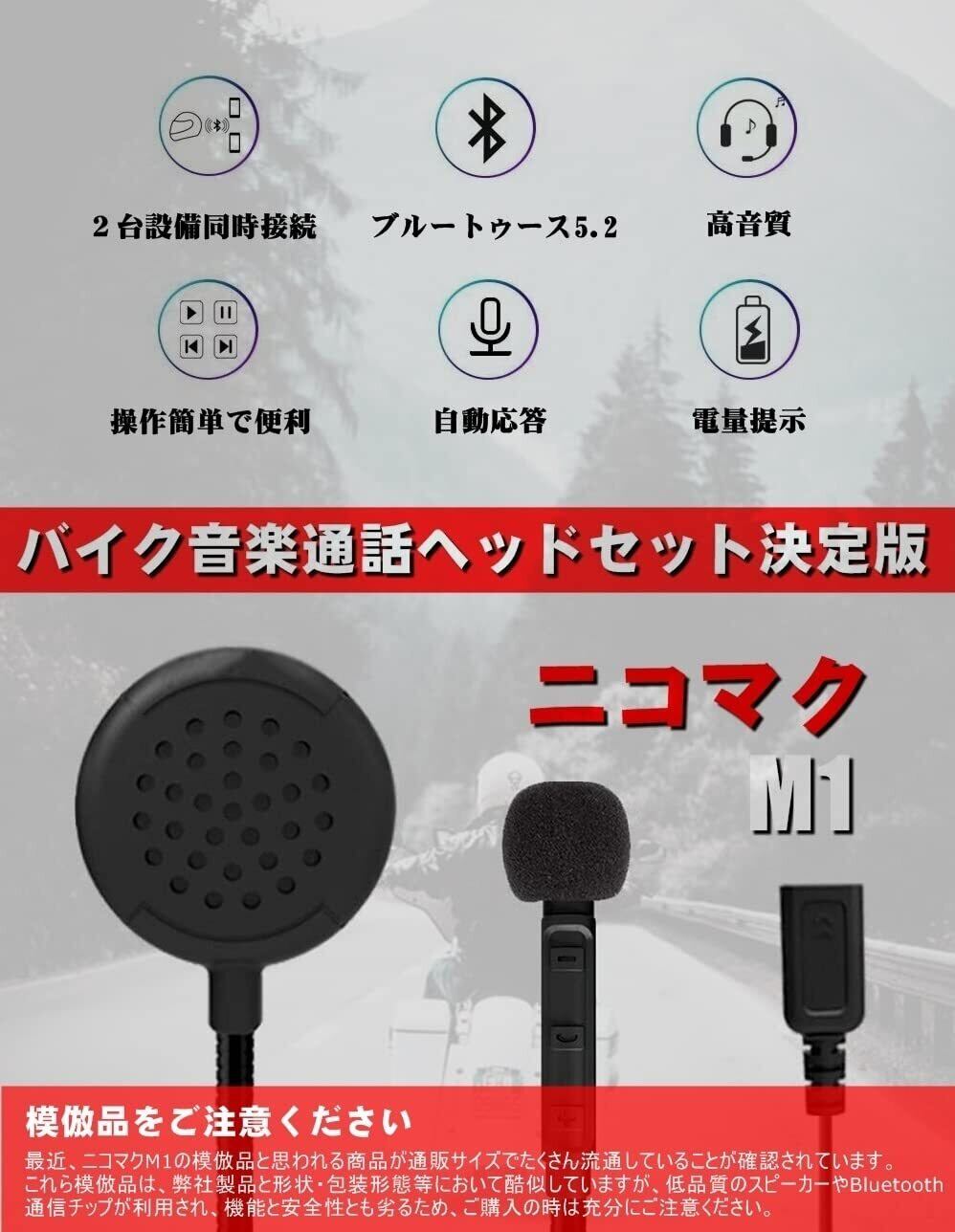 【数量限定】【最先端Bluetooth5.2 薄型 低音強化】 ニコマク バイク インカム イヤホン マイク ヘルメット ヘッドセット M1 ブルートゥース5.2 技適認証取得済 ハンズフリー 自動応答 オートバイ スピーカー マイク付き 音楽/音声コントロール/通話