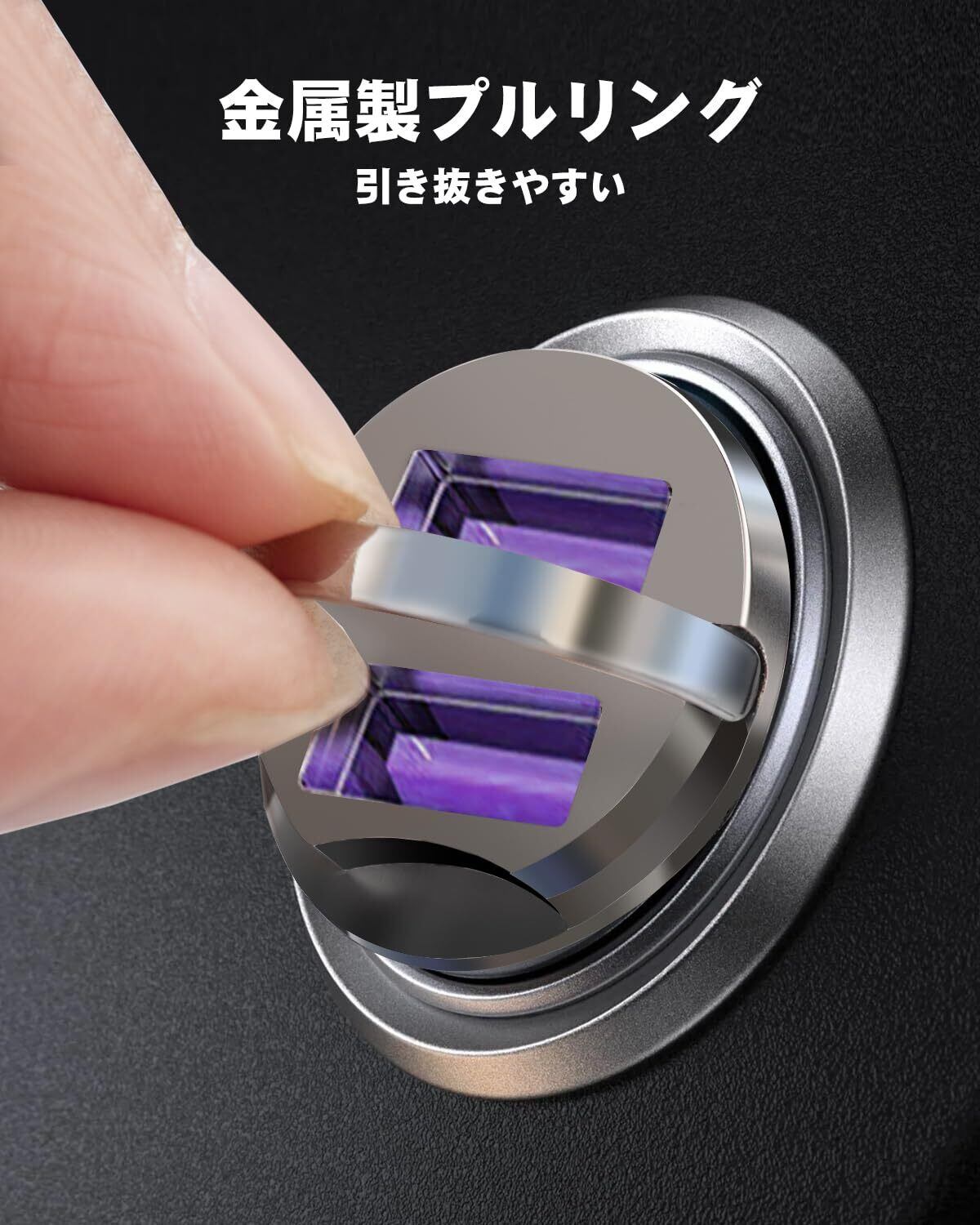 【2025 新設計】2024 新デザインのデュアルUSBカーチャージャー。車内のスペースを邪魔しない超コンパクト設計。取り外しが簡単な金属製プルリング付き。