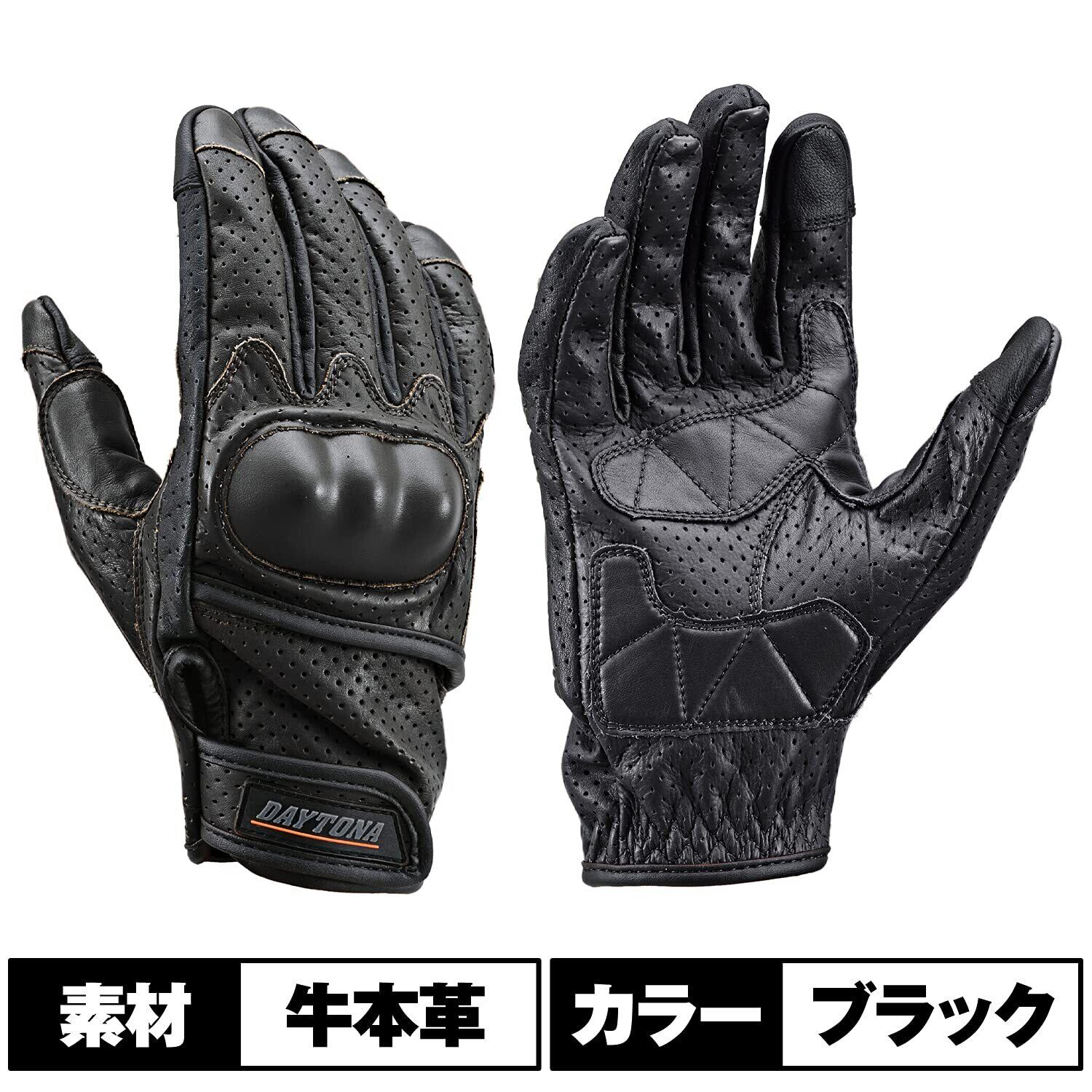 【在庫処分】デイトナ(Daytona) バイク用 グローブ 春夏秋 本革(牛革) ハードプロテクター スマホ対応 カウレザー パンチングメッシュ プロテクターグローブ HBG-130 ブラック Mサイズ 18912