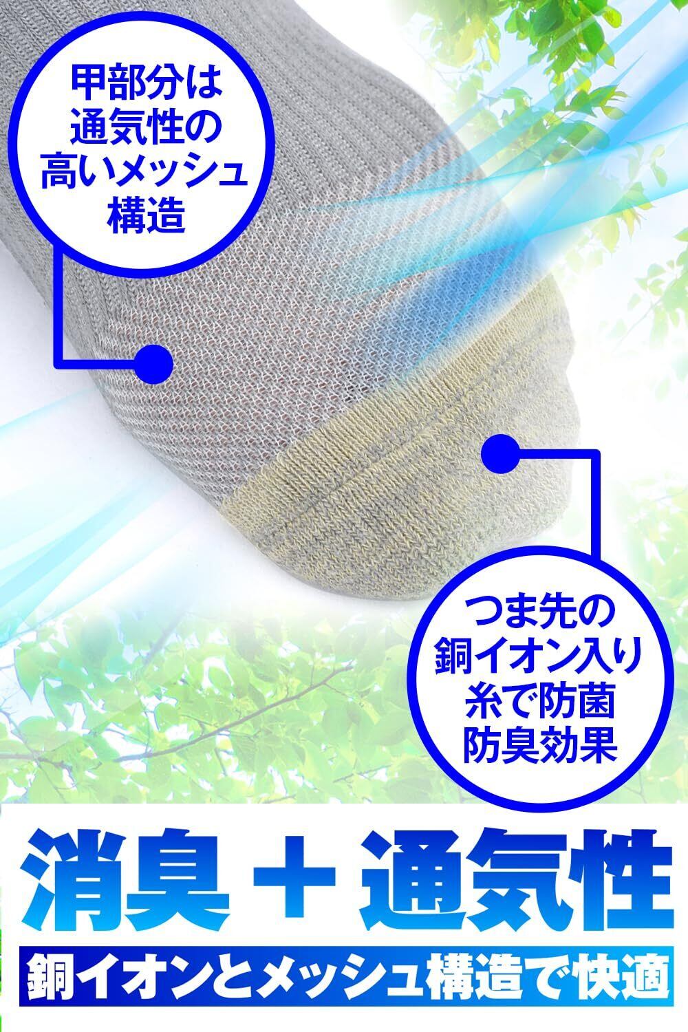 つま先の銅イオン入り糸が抗菌防臭効果を発揮
