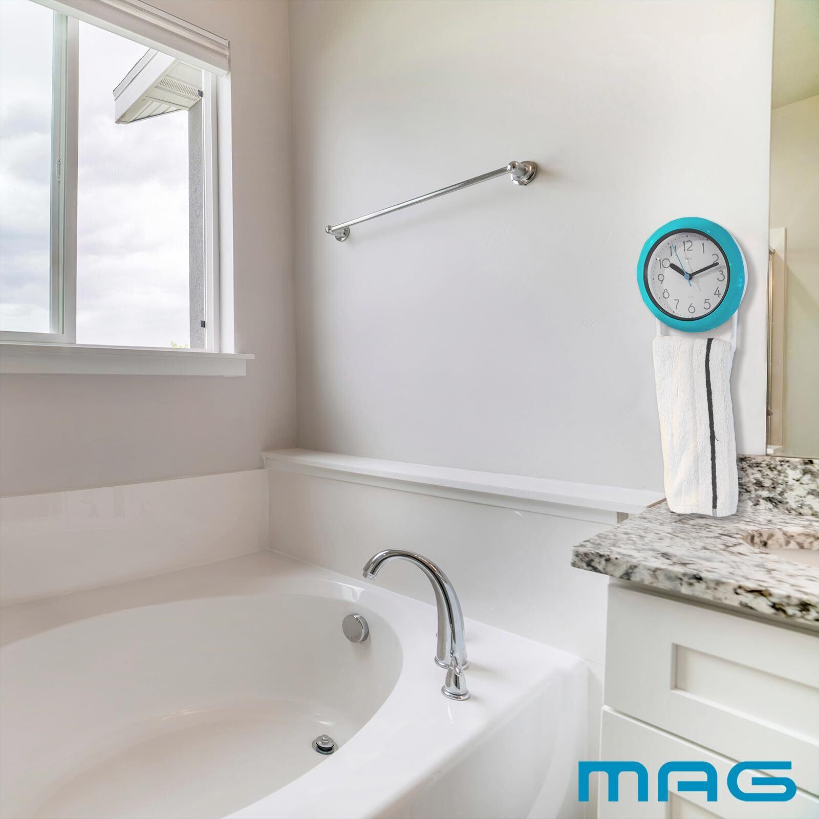 MAG(マグ) Felio(フェリオ) バスクロック生活防水 防塵 IP52 お風呂 水回り アナログ ステップ秒針 置き掛け兼用 バブルコート ブルー FEW130 BU ノア精密