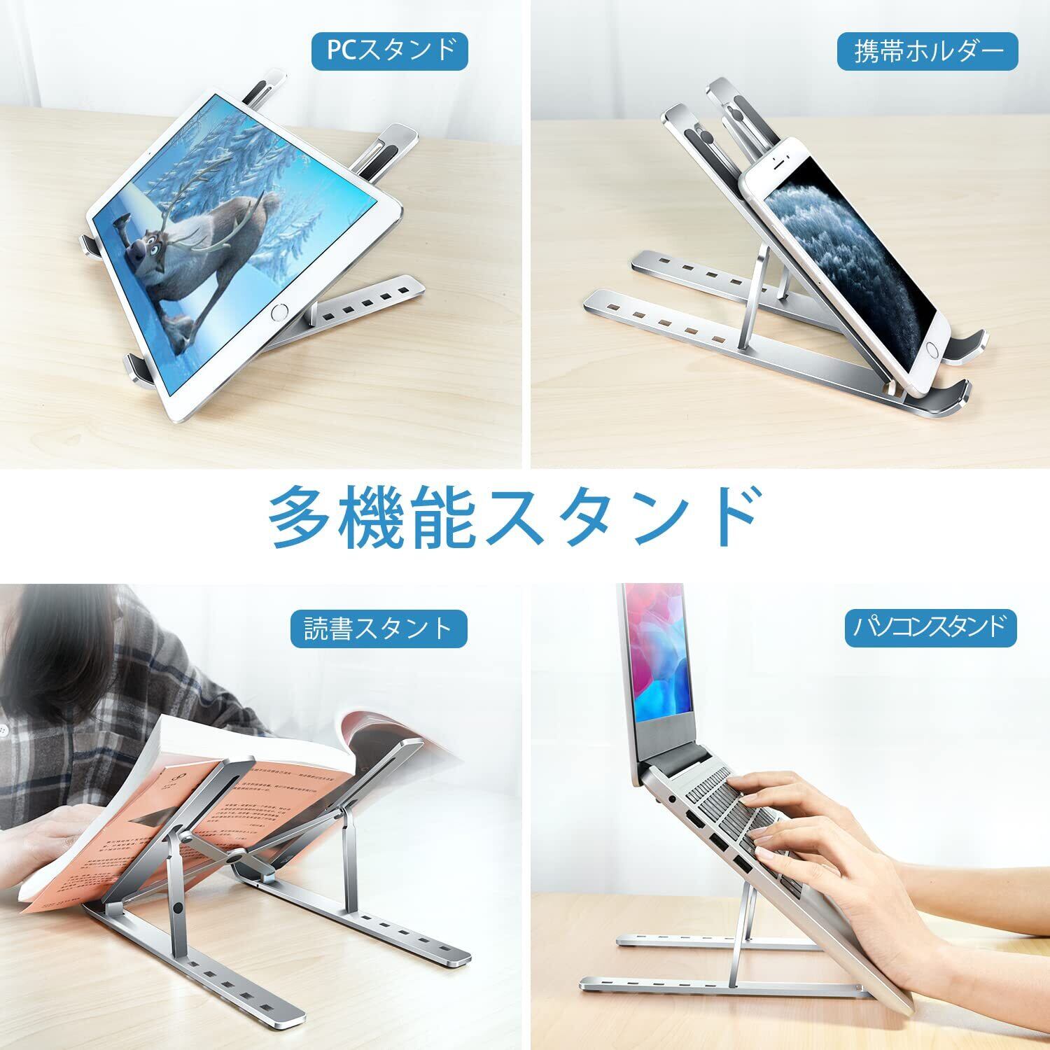 【機能性とデザイン性を両立】スタイリッシュなステンレスカラーと高級感のあるアルミ質感で、インテリアに馴染みやすく、Macbookなどのノートパソコンとの相性も抜群です。ファイルやノート、本にも活用可能で実用性が高い。年齢問わず、学生から年配の方まで使え、在宅勤務、リモート授業、勉強、読書など幅広く活用できます。PC作業で目が疲れやすい、目眩、肩こり、首周りが痛みがち、集中力低下などに心当たりのある方におススメです。Macbook/Macbook Air/ Macbook Proシリーズ/Surface/Surface Proシリーズ/Surface Book/iPad Pro/Sony/HPなどのすべての7-17.3のノートPCやタブレットを幅広くに対応可能です。