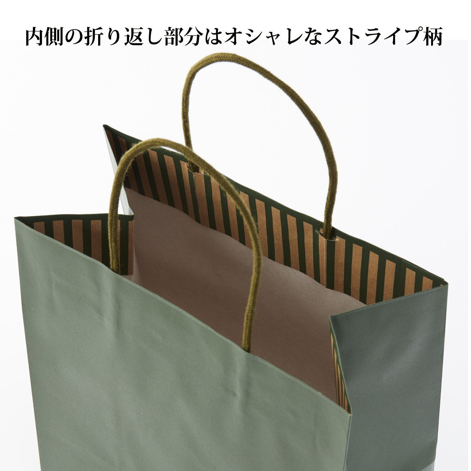 無地でシンプルなデザインながら、色味・質感等にとことんこだわった紙袋。
