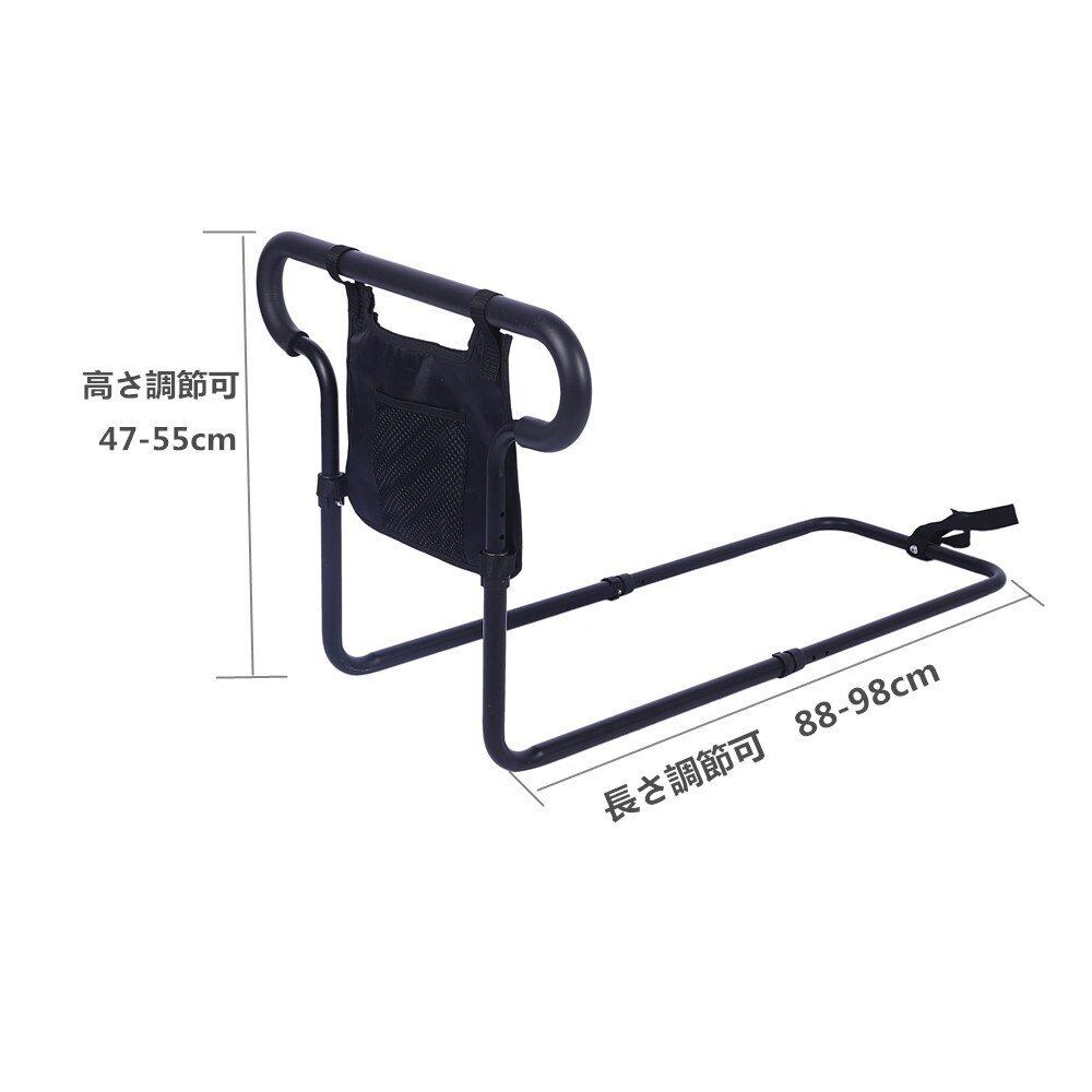 【負担軽減】妊婦、高齢者、障害者と術後患者のために設計されて、膝や腰の負担にならないように起上がりを補助する手すりです。ベッドからの転落防止や布団のズレ落ち防止にも役立ちます。小物が収納できるポケットが付きます。