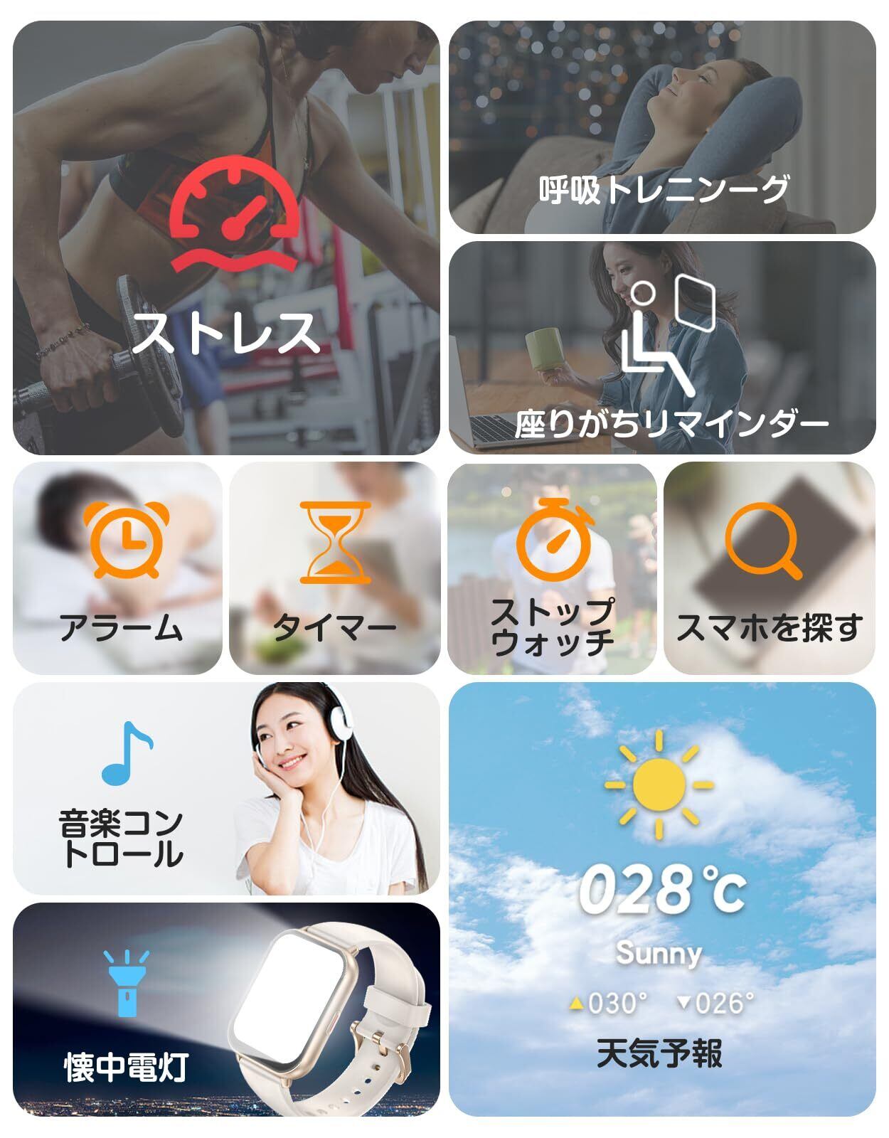 【カスタマイズ文字盤・豊富な機能を搭載】 280種類以上の文字盤デザイン——クラシック、シンプル、クール、かわいいものが揃っています。気分や服装に合わせて時計の文字盤を変えることができ、1日に新鮮さと活力を与えてくれます。このほかオリジナルダイヤルを指定でき、ペットや家族など好きな画像をダイヤルに設定できます。毎日を幸せにします。ストップウォッチ、タイマー、懐中電灯、音楽コントロール、目覚まし時計、座りがちリマインダー、女性の月経周期記録、腕上げ点灯、スマホを探す、明るさ調整など毎日のニーズに応える機能が充実しています。