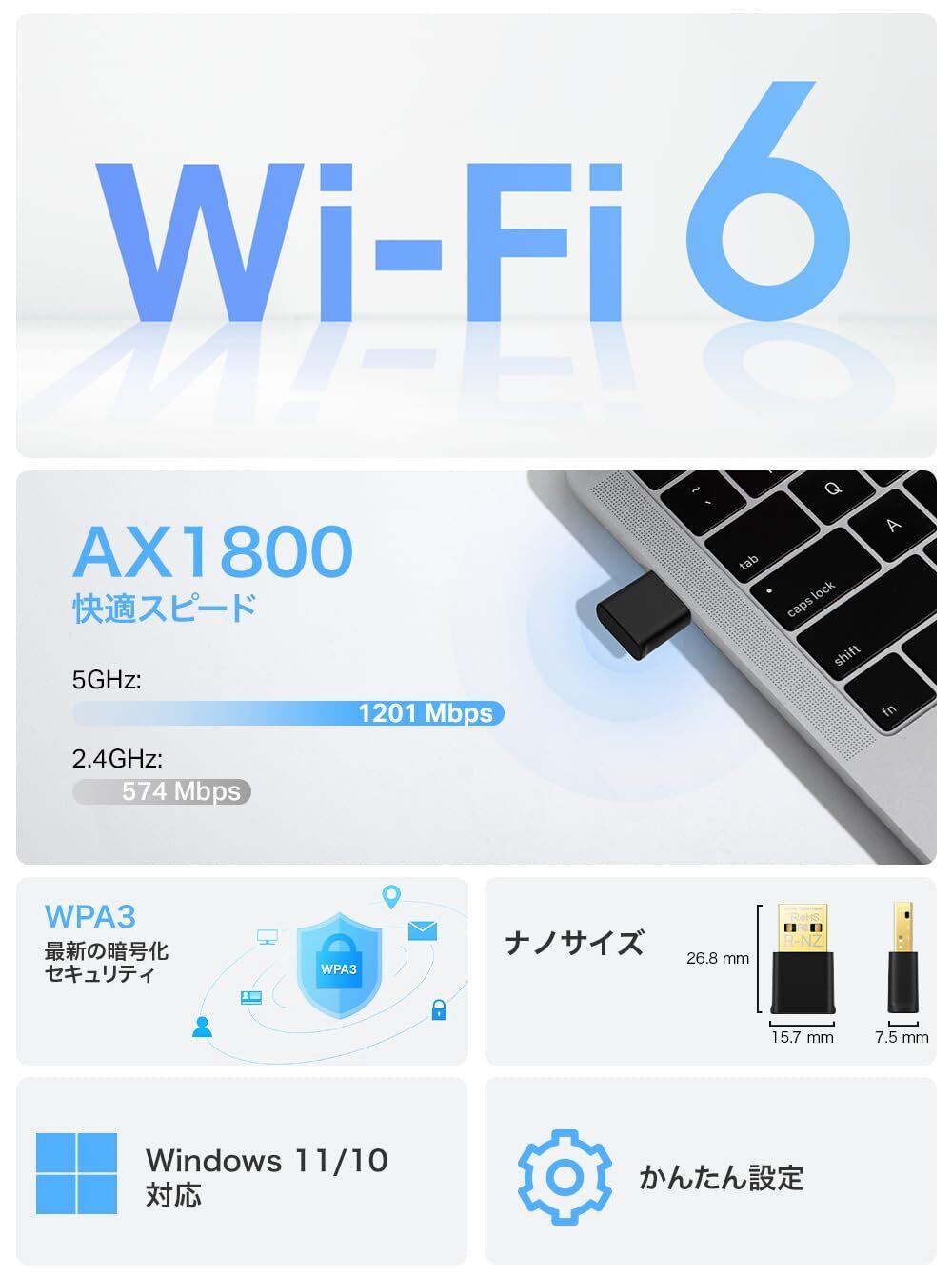 [ナノデザイン] 小型で持ち運びにも便利なWi-Fi6アダプター