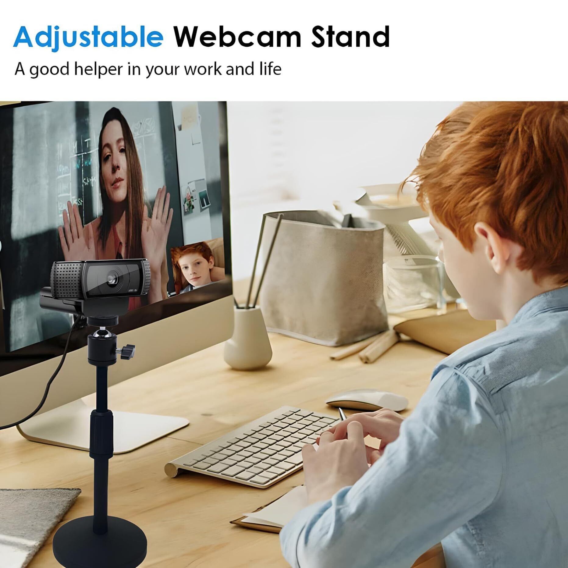 お好みの高さに調節できる卓上の伸縮式ウェブカメラスタンドです。ご注意:高さを調整する部分の棒はパイプの中にあります。