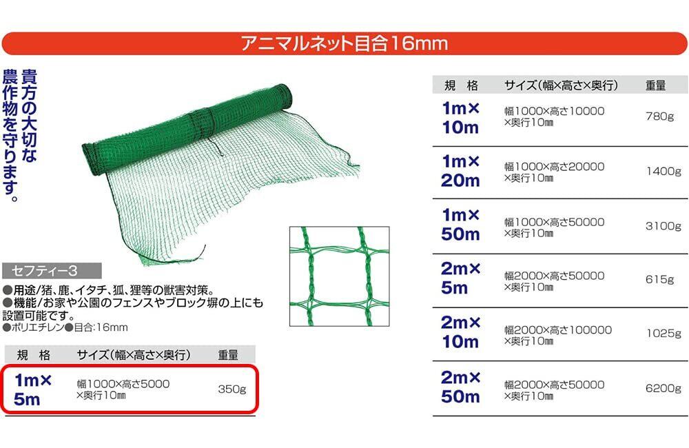 セフティー3(Safety-3) アニマルネット 補強ロープ入 目合16mm 幅1m×長さ5m