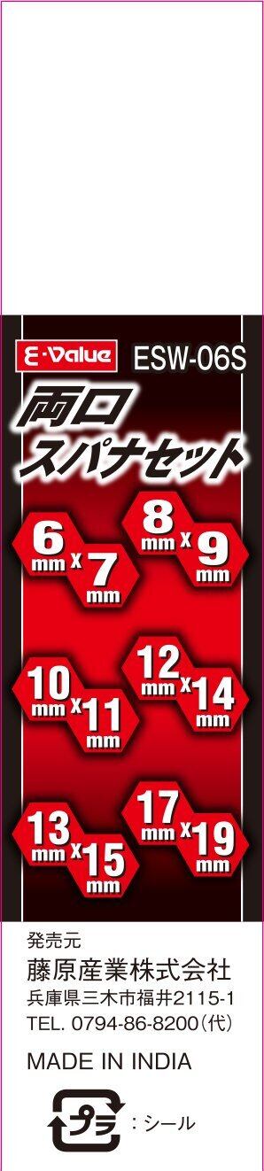 イーバリュー(E-Value) 両口スパナセット ミリサイズ 6本組 ESW-06S