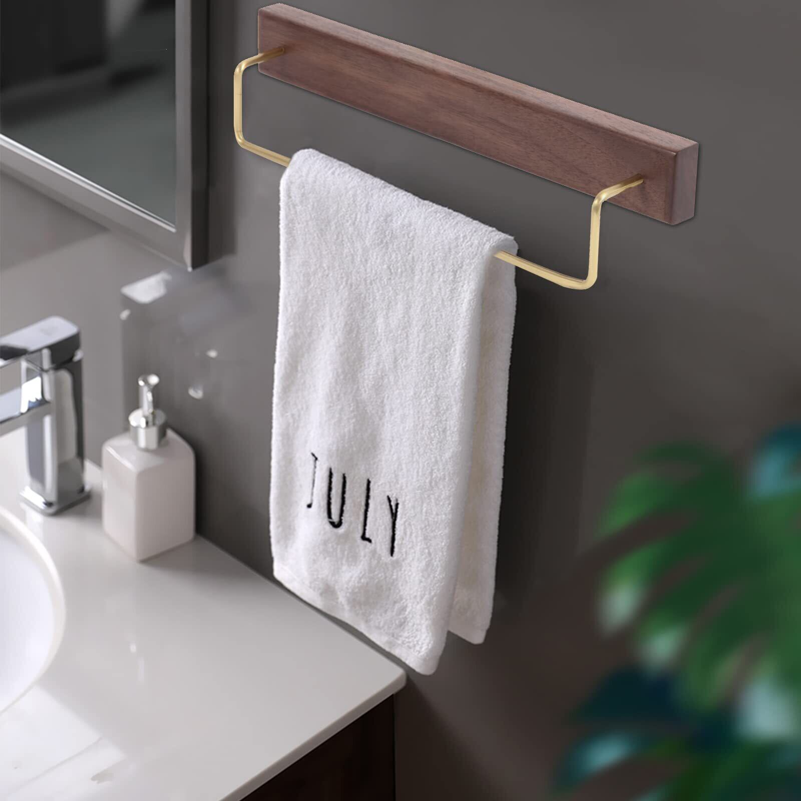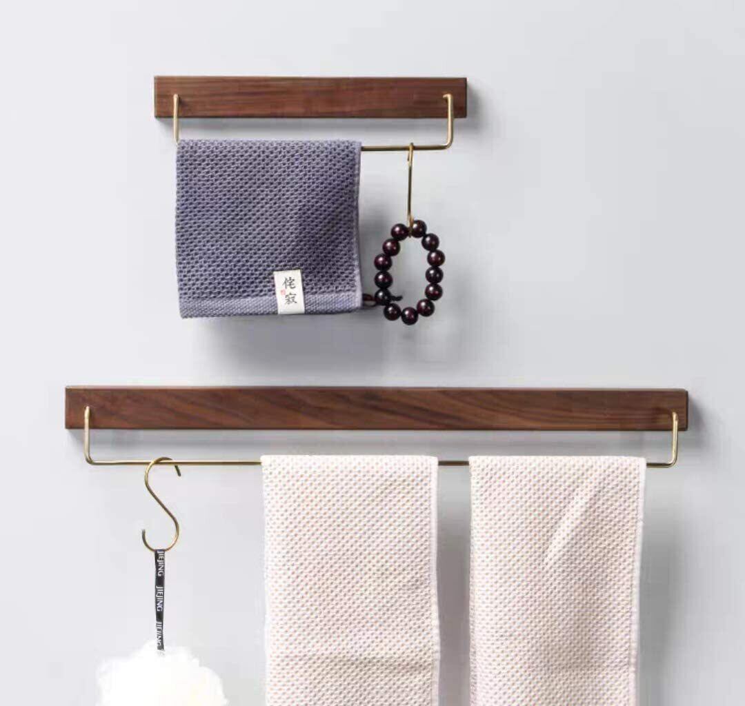 Sakulaya タオル掛け タオルバー タオルハンガー 天然木 真鍮 取付簡単 キッチン タオル掛け 洗面所 浴室 お風呂 収納 S字フック付き クルミ