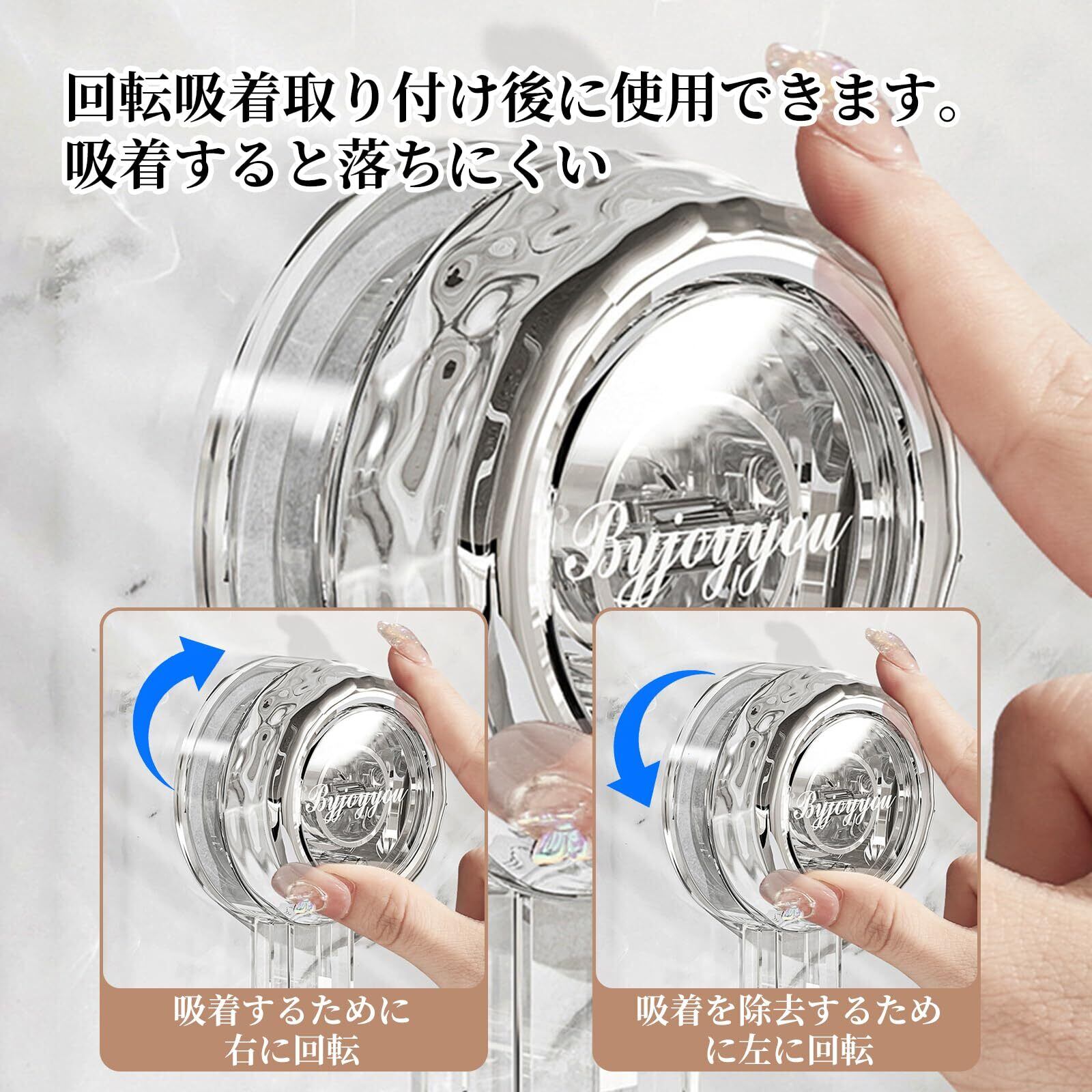 【強力真空吸盤】: シャワーフック高強度の真空吸盤デザインを採用し、フックがしっかりと固定され、シャワーヘッドの重さを楽に支えられ、安全に使用できます。