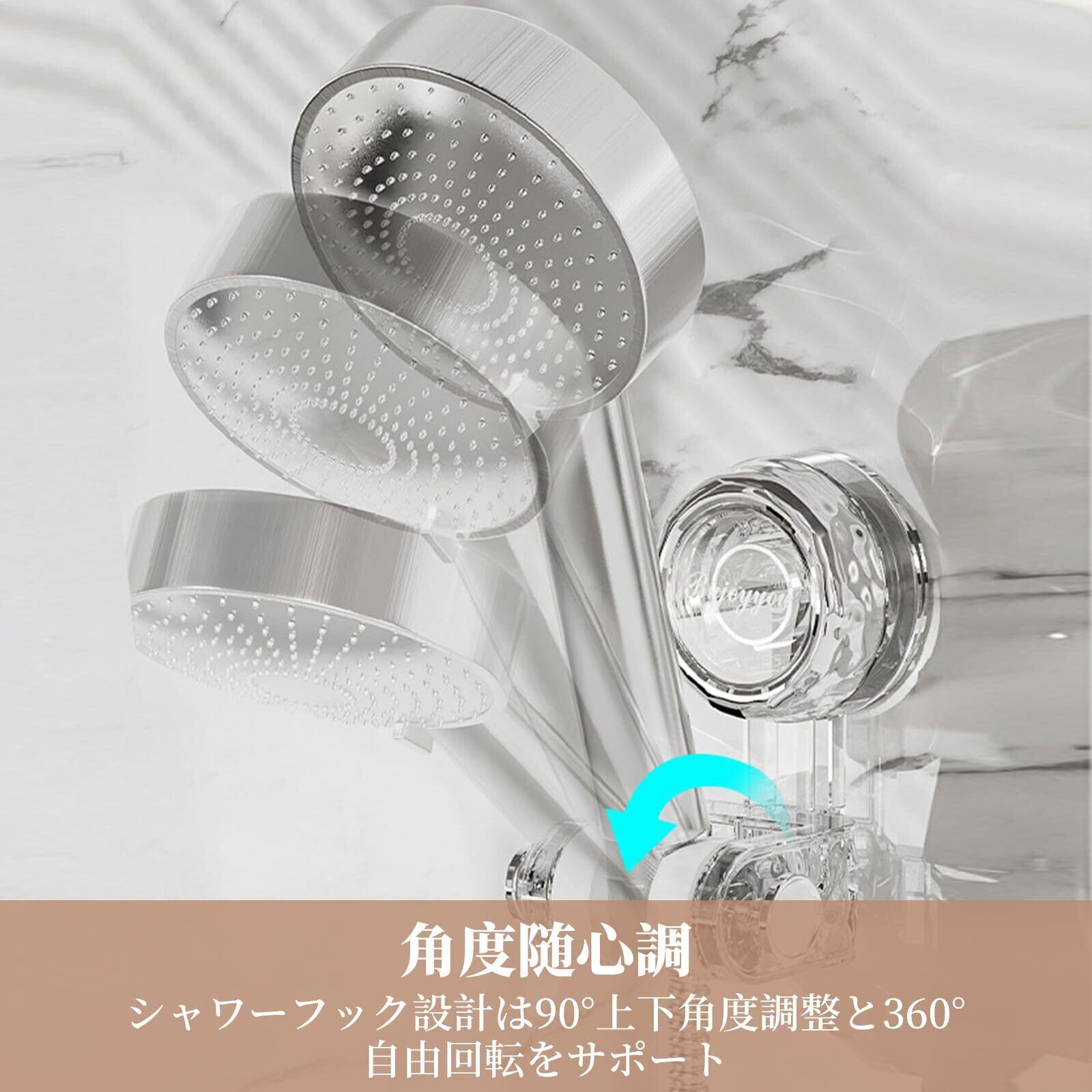 【自由な高さと角度調整】: シャワーフックのデザインは、90°の上下角度調整と360°の自由回転をサポート。個人のニーズに応じてシャワーヘッドの高さと角度を調整でき、最適なシャワー体験を提供し、家族の使用習慣に対応します。