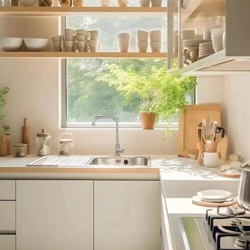 【360度自由回転】蛇口のチューブは360°回転式調整で、注ぎ口の方向を自由に調整でき、流し台全体を簡単に覆うことができます。キッチンシンク蛇口は同時に複数のシンクのニーズを満たすことができます。