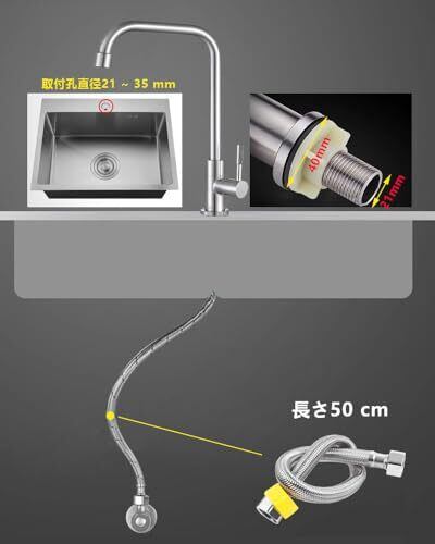 SUS304ステンレス キッチン蛇口 キッチン用水栓 シンク蛇口 手洗いボウル用水道 シングルレバーワンホール単水栓 360度回転節水 50cm取り付けホース付き 泡沫水流 (単水栓 Bタイプ)