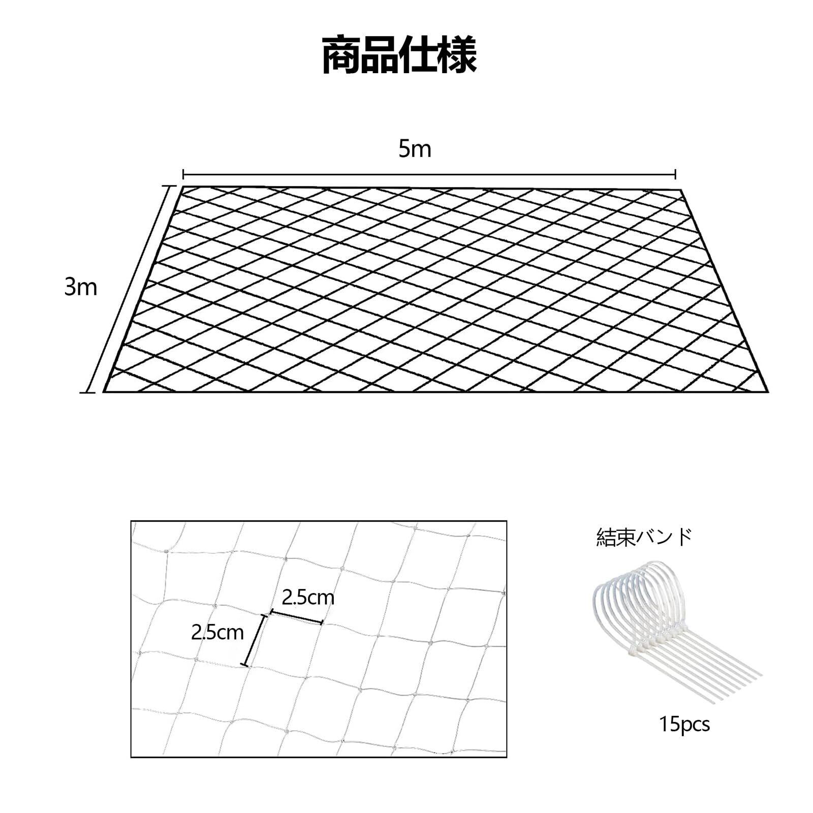 SLEIJAOOE 鳥よけネット3×5m (結束バンド 15本付き)ベランダ 防鳥ネット 透明色で視界や日差しを遮らない 25mm網目で カラス 鳩 侵入防止 鳥害対策 防鳥網 ブルーベリーや野菜栽培や果樹などの守り鳩避けネット猫よけ 侵入 脱走防止 (3*5m)