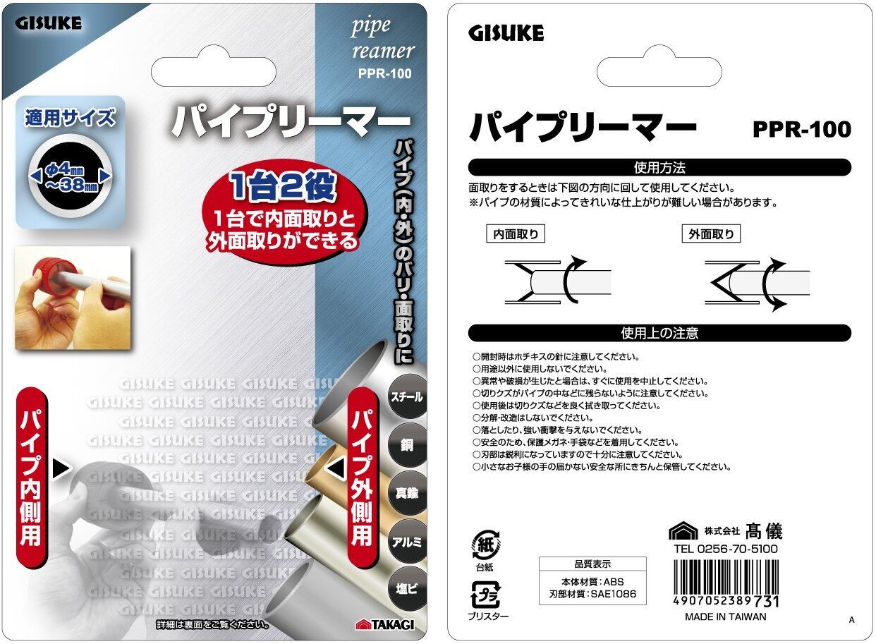 高儀(Takagi) パイプリーマ パイプのバリ・面取り用 PPR-100 適応サイズφ4~38mm