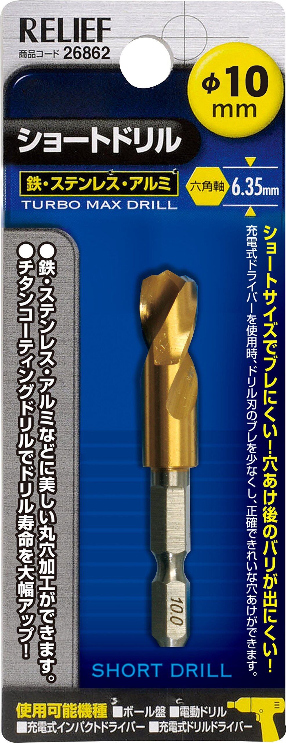 【2022最新】イチネンアクセス RELIEF(リリーフ) 鉄工ドリル 六角軸ショートドリル 10.0mm 26862 鉄工用 チタンコーティング