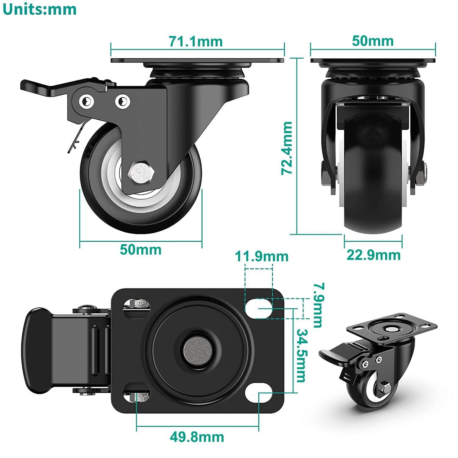Zalslei プレート式 キャスター 車輪 ブレーキ付き 2インチ 4個耐荷重300kg 360度回転 高耐久性 ストッパー付き 屋内外用 自在キャスター ネジ付き 取替えDIY用 交換用 便利グッズ 4個セット 車輪径50mm