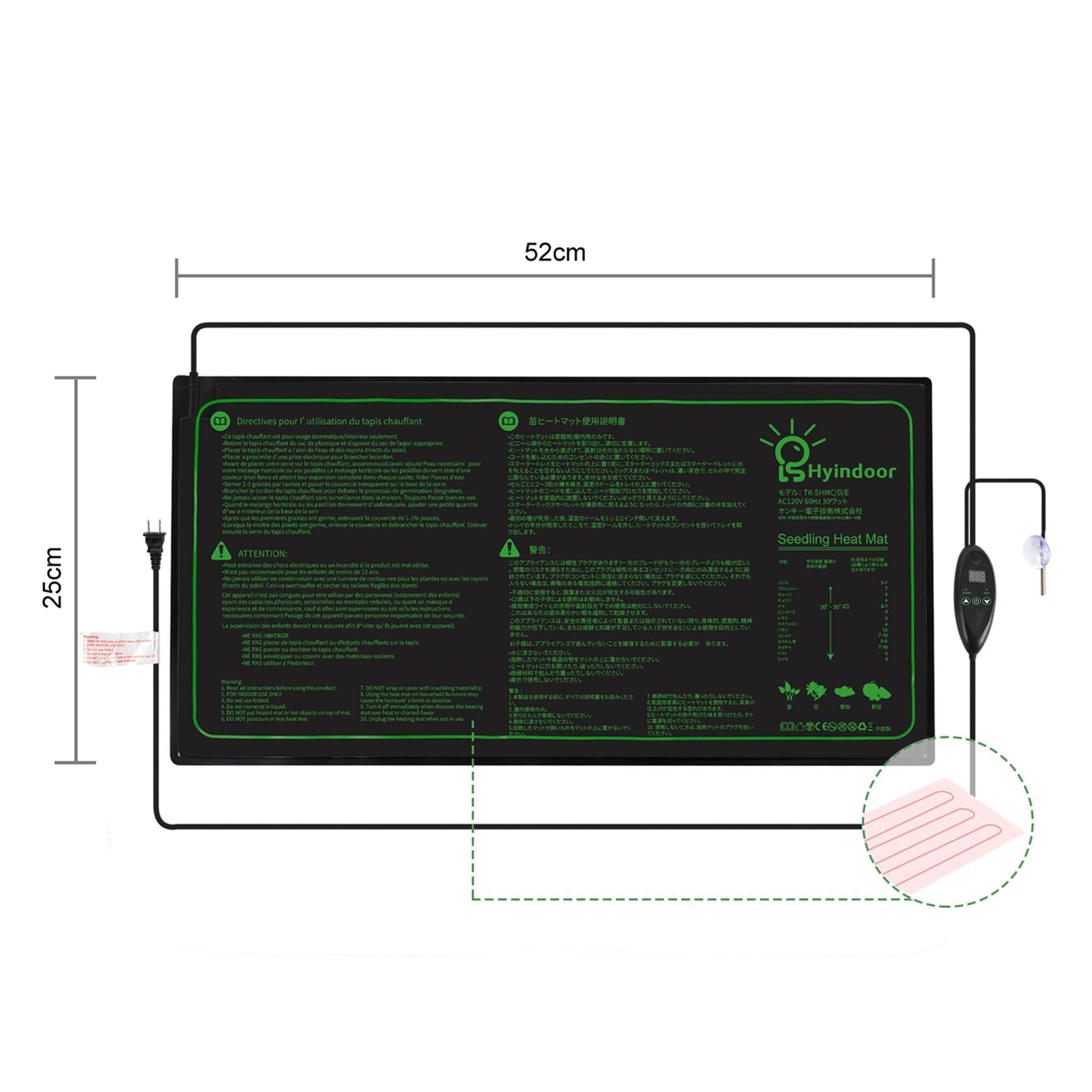 Hyindoor 10"x20.75" ヒートマット サーモスタット付き 園芸ヒーター 発芽マット 温度制御 温床関連 育苗器 (25x53cm)