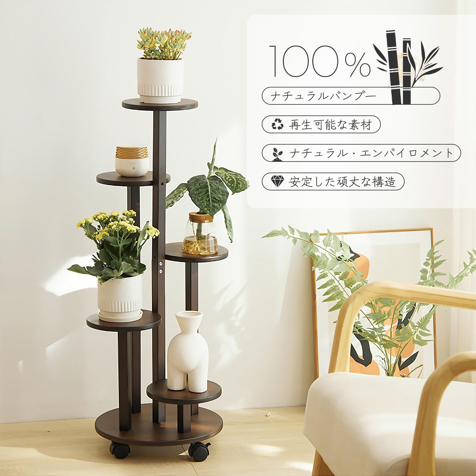 【新春セール】SmartMaster フラワースタンド 花台 室内外兼用の5段 プランタースタンド 園芸ラック 観葉 植物 花棚 リビングルームバルコニーグリーンディルフラワーポットスタンド 組み立てが簡単 移動が容易 指向性キャスター 耐荷重30㎏ おしゃれ 飾り 収納 (茶色)