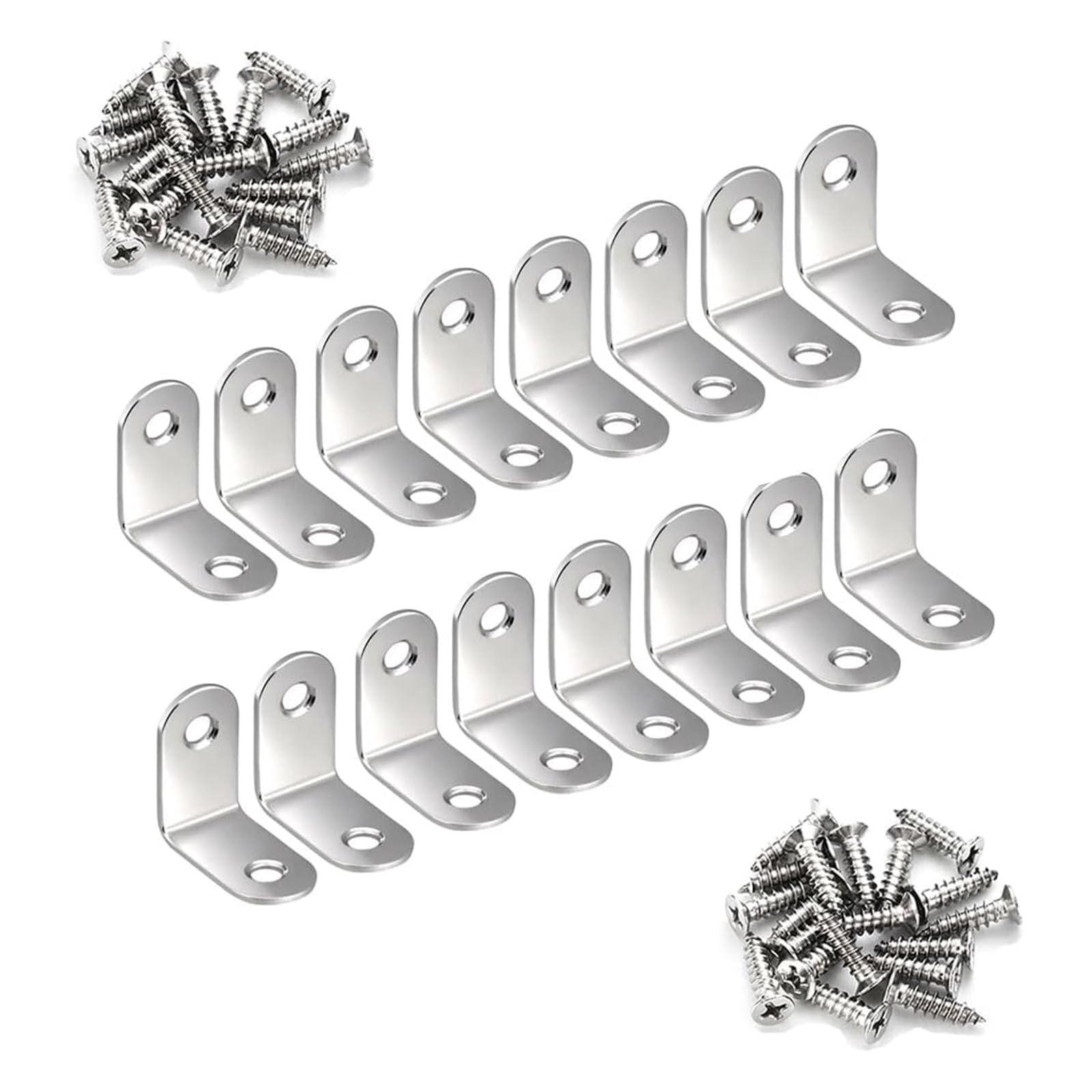 サムコス l字金具 ステンレス L字アングルブラケット 直角フック 16個 アングル ブラケット金具 転倒防止 補強 金具 ネジ 32個付 棚受け金具 (シルバー 30*30*16mm)