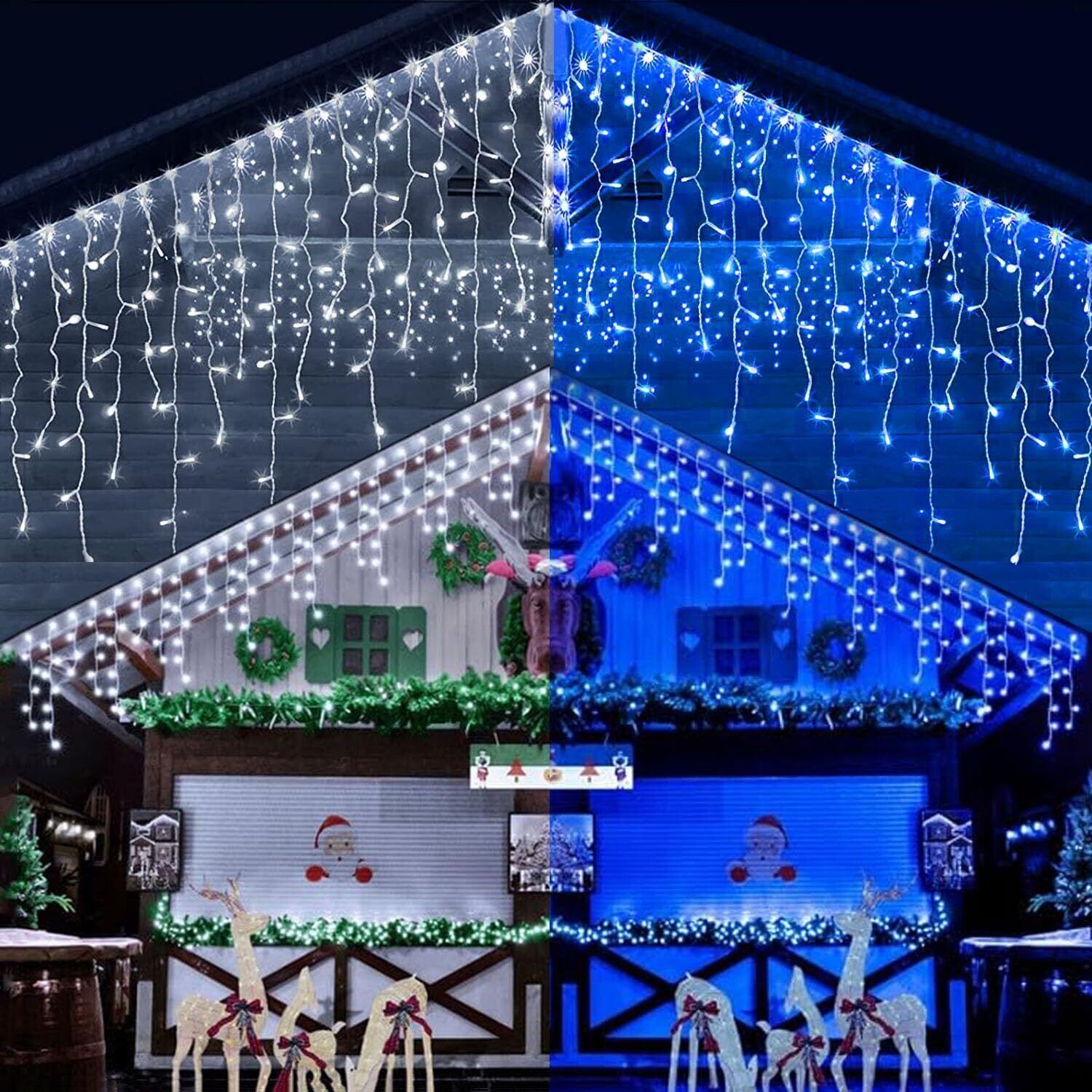 【LEDつららライト】つらら仕様: LED配列: 4-5-7, 75列 ; つらら長さ:4LED(約40cm)、5LED(約50cm)、7LED(約70cm). 電球数:400球;コード間隔:12cm;発光色: ホワイトとブル;コード全長さ: 約13m 電飾ケーブル長さ: 約10m 電源コード長さ:約3m。最大2連接(800球)までに連結可能です。