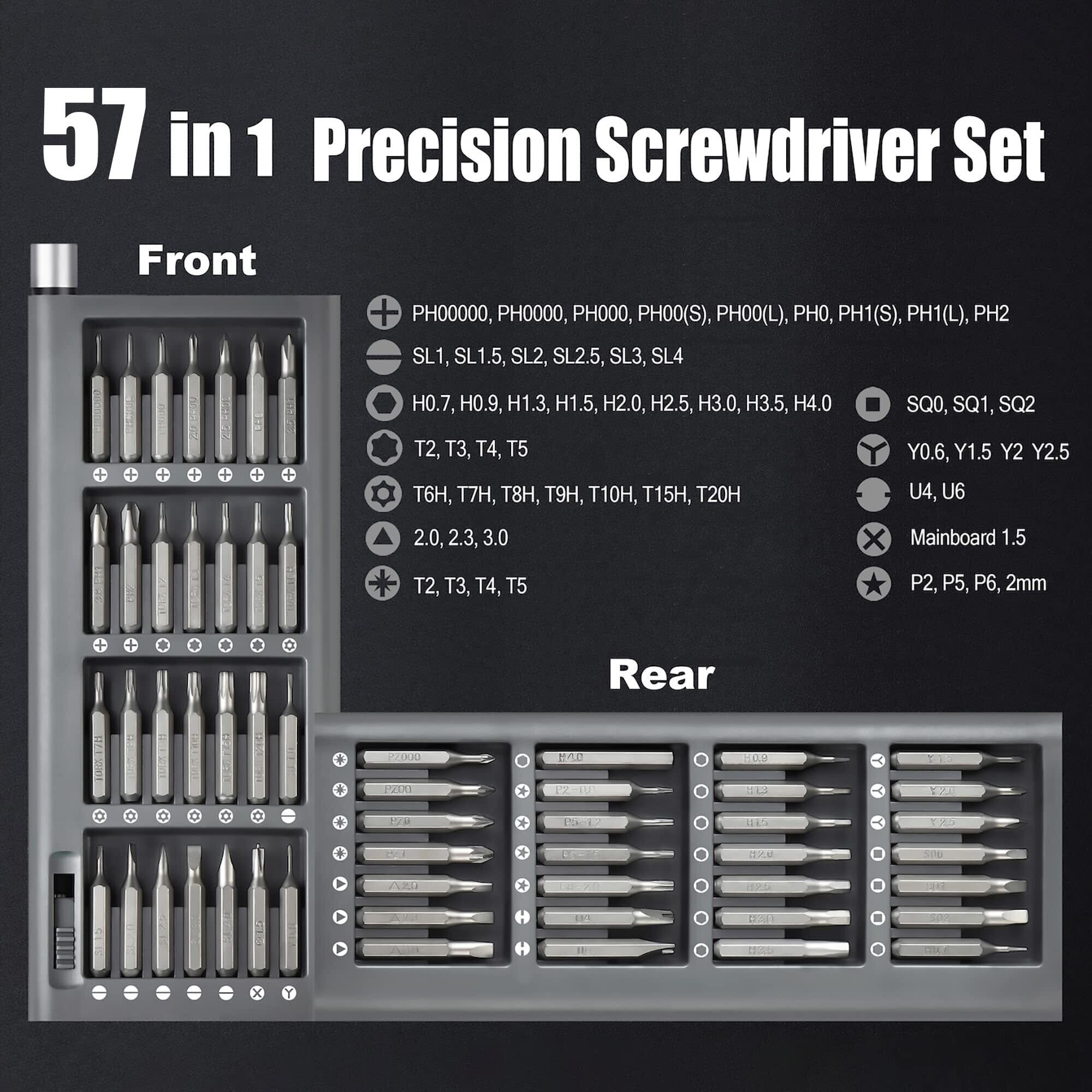 EZARC 精密ドライバーセット 57in1 多機能修理キット マグネット吸着収納 磁石付き 特殊ドライバー 分解 DIY作業 電子製品/カメラ/時計/メガネ/スマホ/iPhone/PC/Mac/iPad/PS4など適用