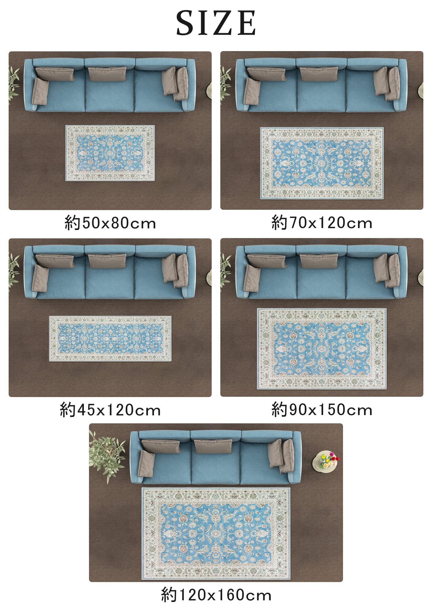 【2022最新】HAOCOO 玄関マット ペルシャ絨毯風 室内 50х80cm 小さい ラグ おしゃれ 洗える 長方形 耐磨耗性 滑り止め 防音 ラグマット 屋外 泥落とし シェニール オールシーズン適用 抗菌防臭 軽量 ライトブルー