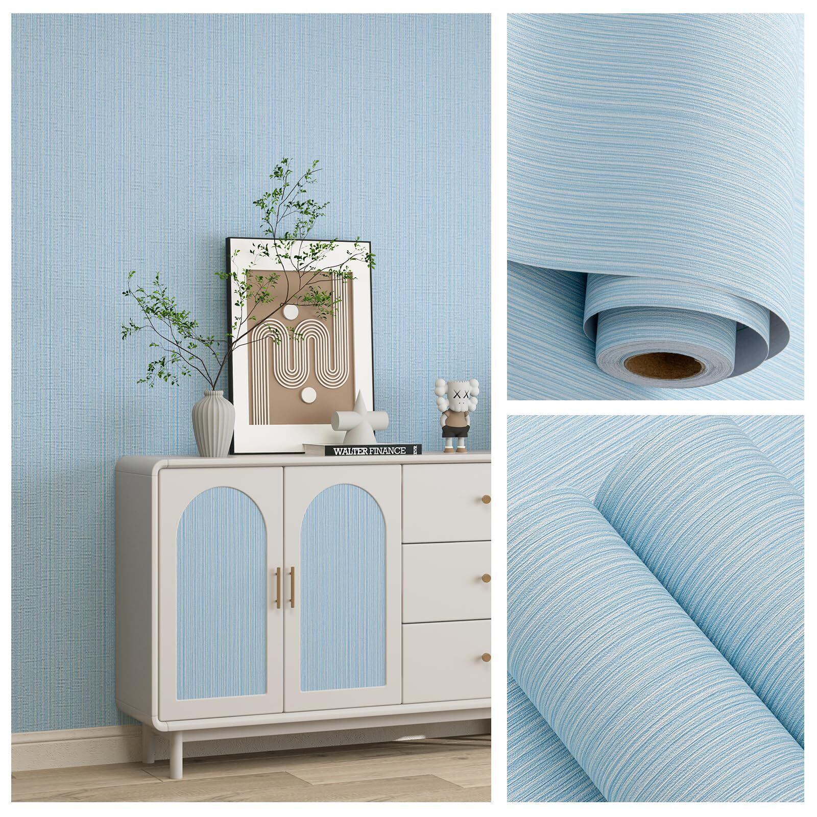 壁紙シール 水色 剥がして貼るだけ リネン テクスチャ 60cmx10m クラシック フェイク グラスウィーブ アップグレード 厚手 粘着 ニュートラル コンタクト ペーパー ビニール フィルム ライナー ロール 家庭用