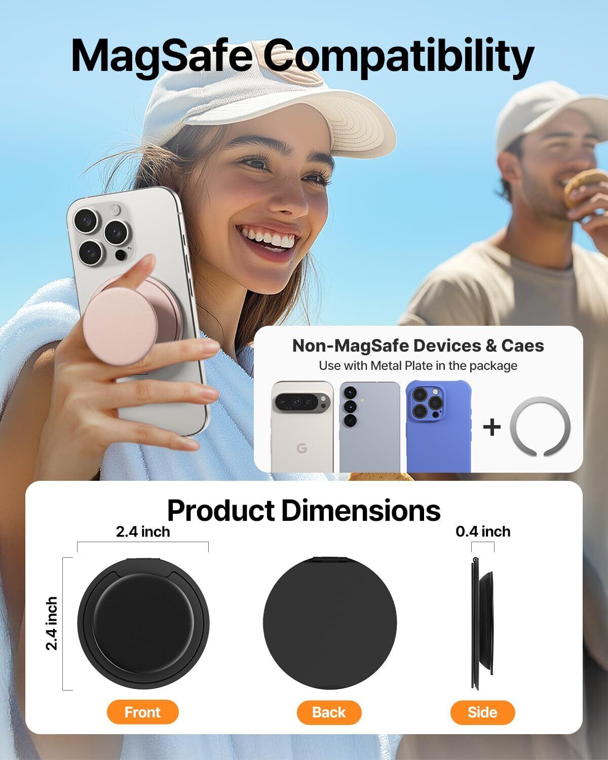 【新登場 リングスタンド追加】Sinjimoru MagSafe グリップスタンド 縦横対応 3000G磁力 薄型10mm 指にやさしいシリコン メタルプレート付き M-Tap Tok Ring Stand ブラック