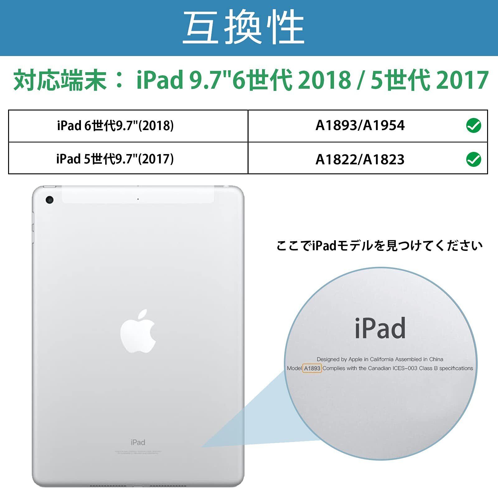 対応機種:Apple iPad 9.7”(旧型)第6世代 2018 (A1893 A1954)/iPad 第五世代 2017 (A1822 A1823)、その他の型式に適用されません。ご購入前に型番をご確認いただきます。