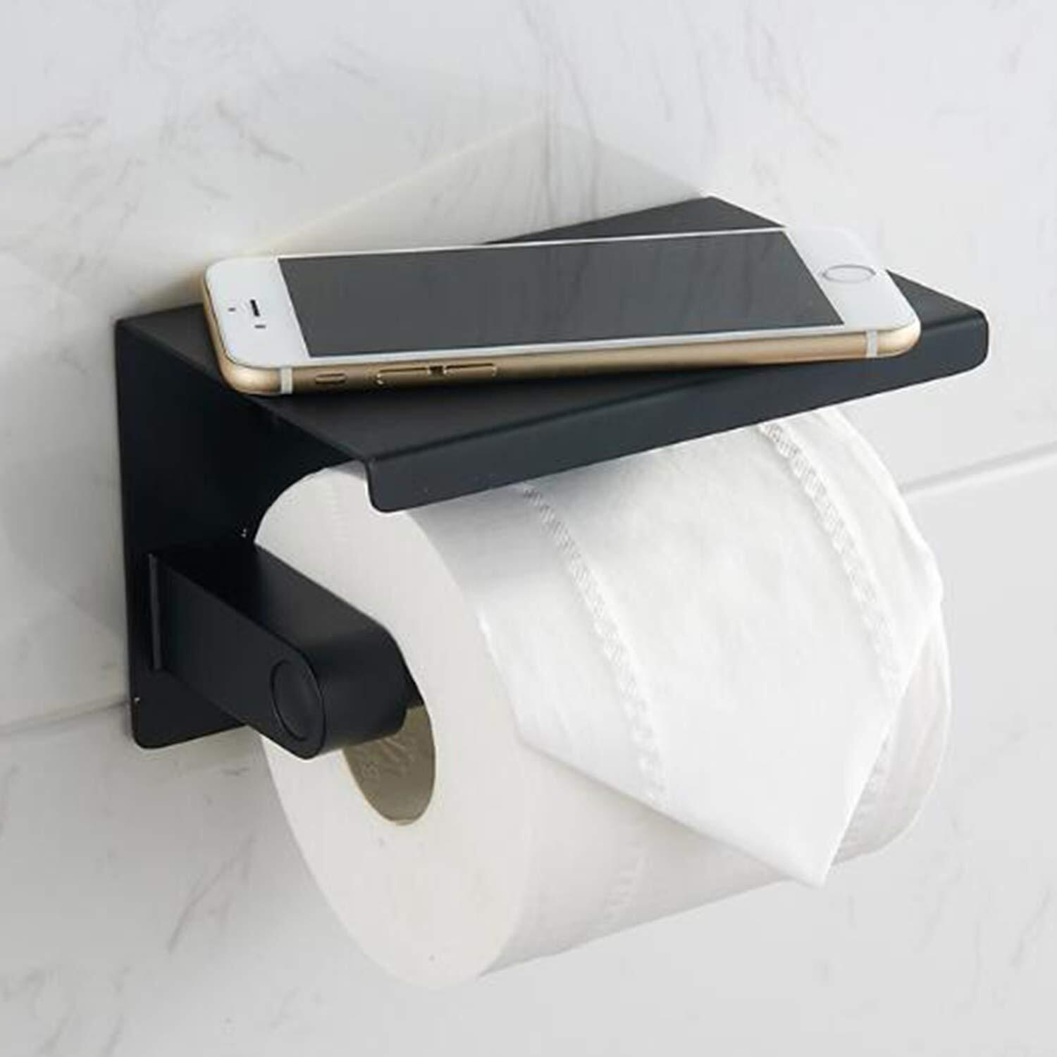 【新春セール】GULICAトイレットペーパーホルダー、SUS304ステンレススチールトイレットペーパーホルダー、電話棚付き壁掛け、バスルームアクセサリー、壁掛けティッシュホルダーペーパーラップマットブラック仕上げ