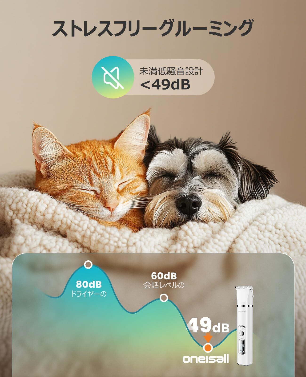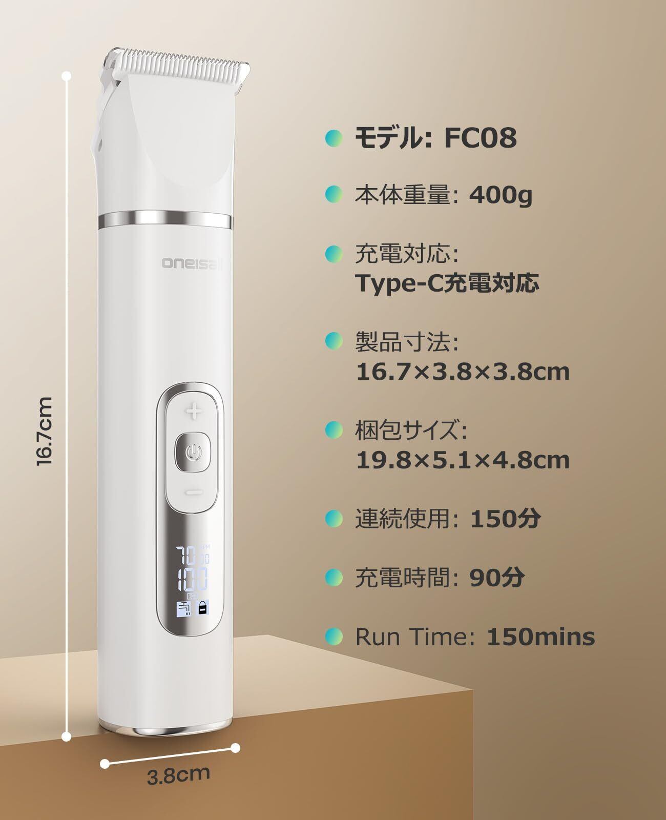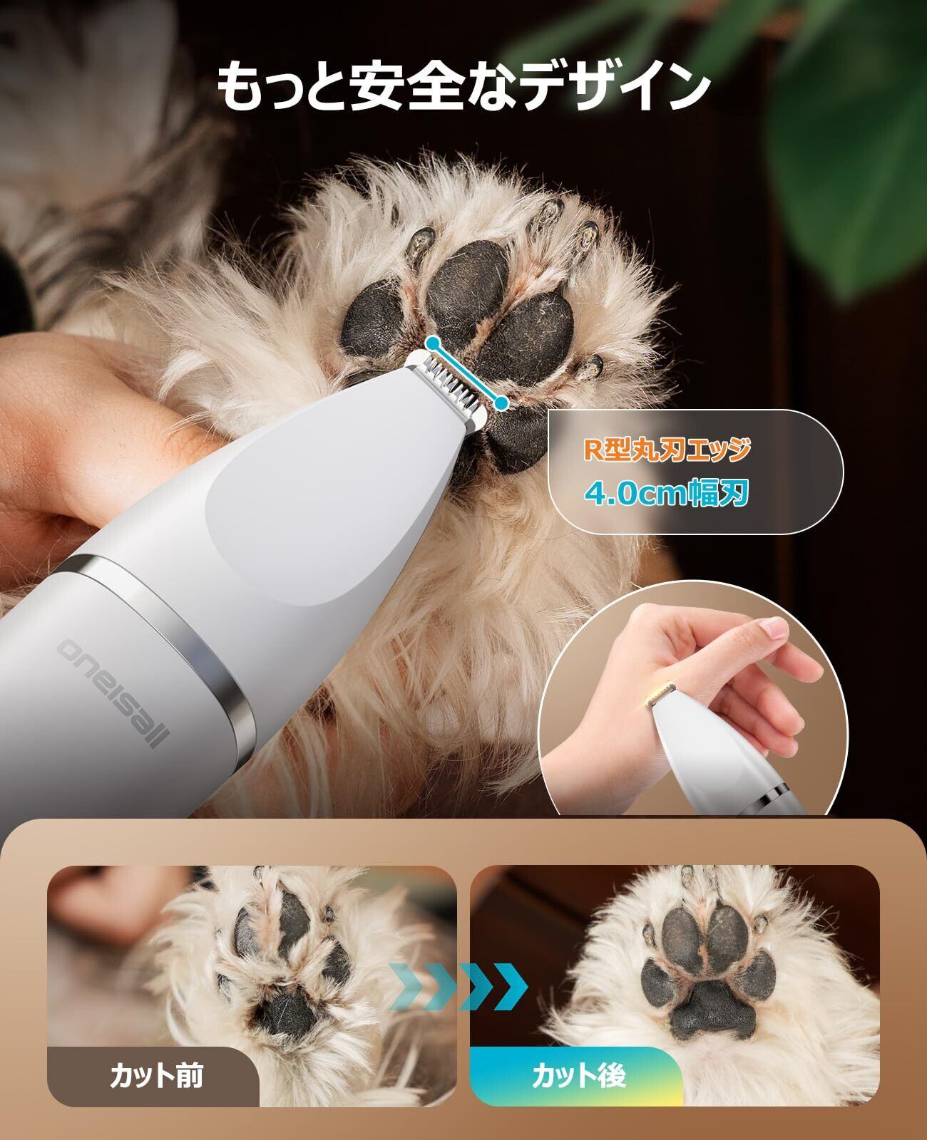 oneisall 4 in 1 犬 バリカン 全身カット/ペット用バリカン 電池残量表示 USB-C急速充電/IPX7防水/ 足裏用·爪用·耳裏用·顔回り用·お尻用/3段階の速度調整/中型·小型の犬 猫種に対応(FC08)