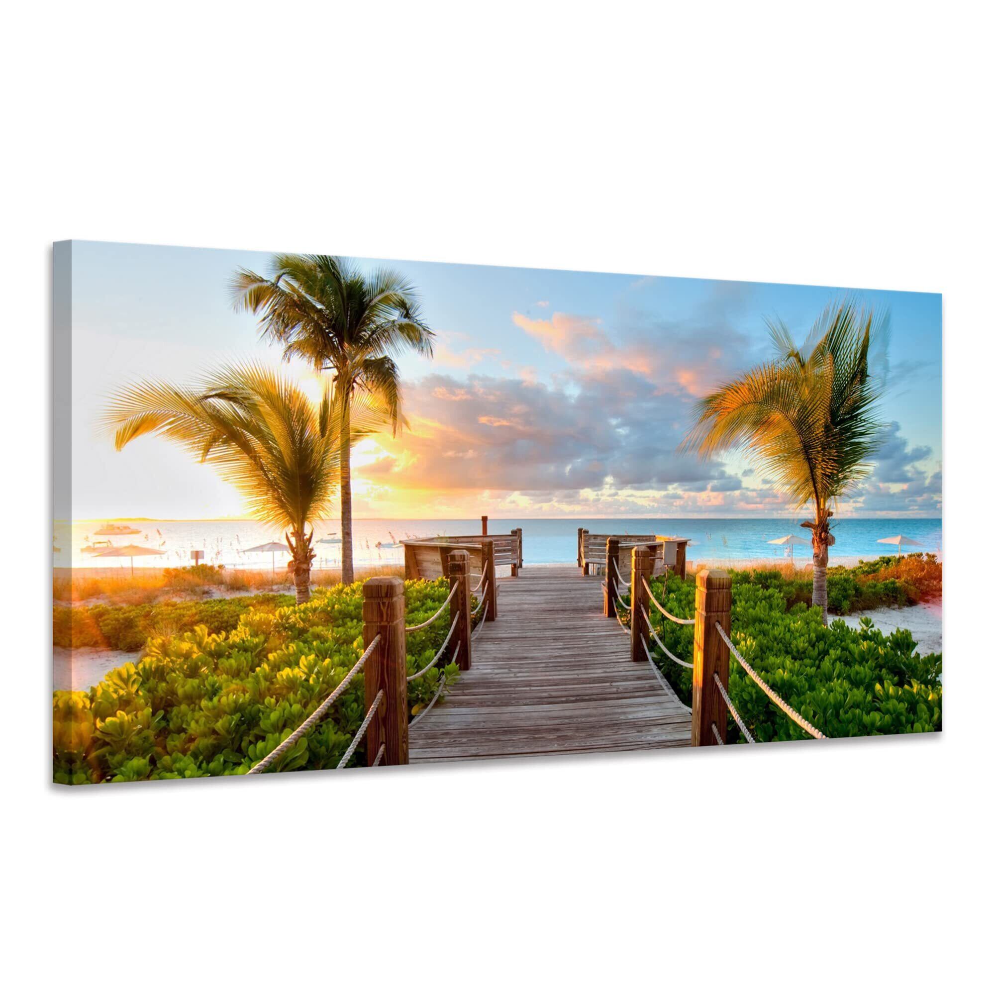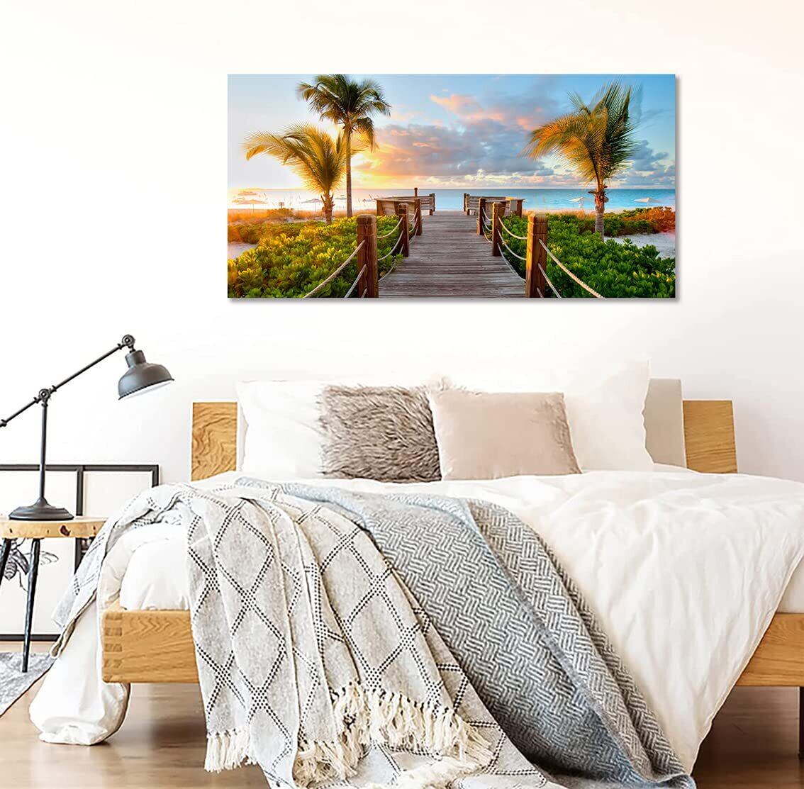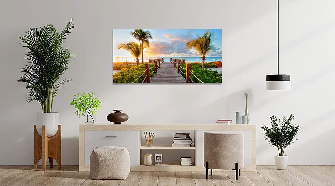 ポスター アートパネル ヤシ 絵画 海 ハワイ 風景画 壁掛け 室内装飾 木枠付きの完成品 (40x80cm x1Pcs)