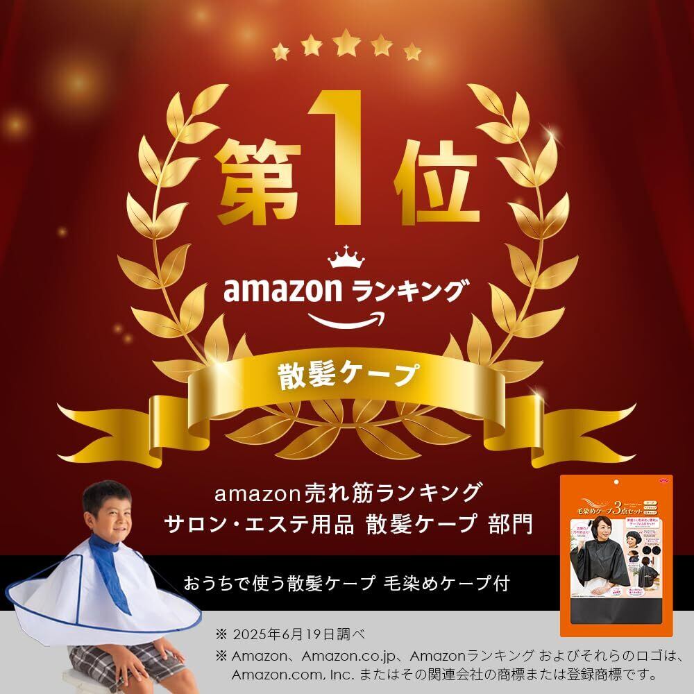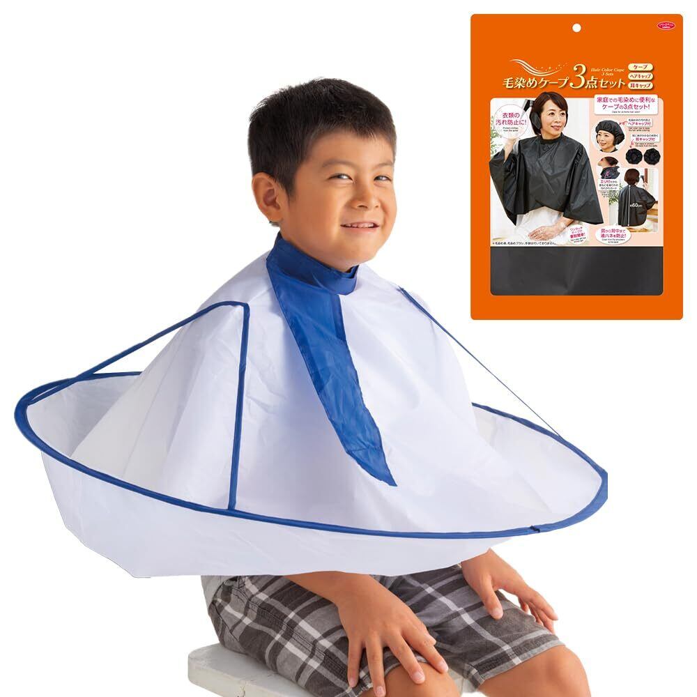 【毛染めケープ3点セット付】商品サイズ/前丈(約)46cm・後ろ丈(約)60cm、適応サイズ/首まわり:30~40cm、材質・成分/EVA樹脂、商品説明/家庭での毛染めに便利なケープ・ヘアキャップ・耳キャップの3点セット。肩から背中まで液ハネを防止!エリ付だから首もとを液だれの汚れからガードします。ワンタッチテープで着脱も簡単!衣類の汚れ防止に。